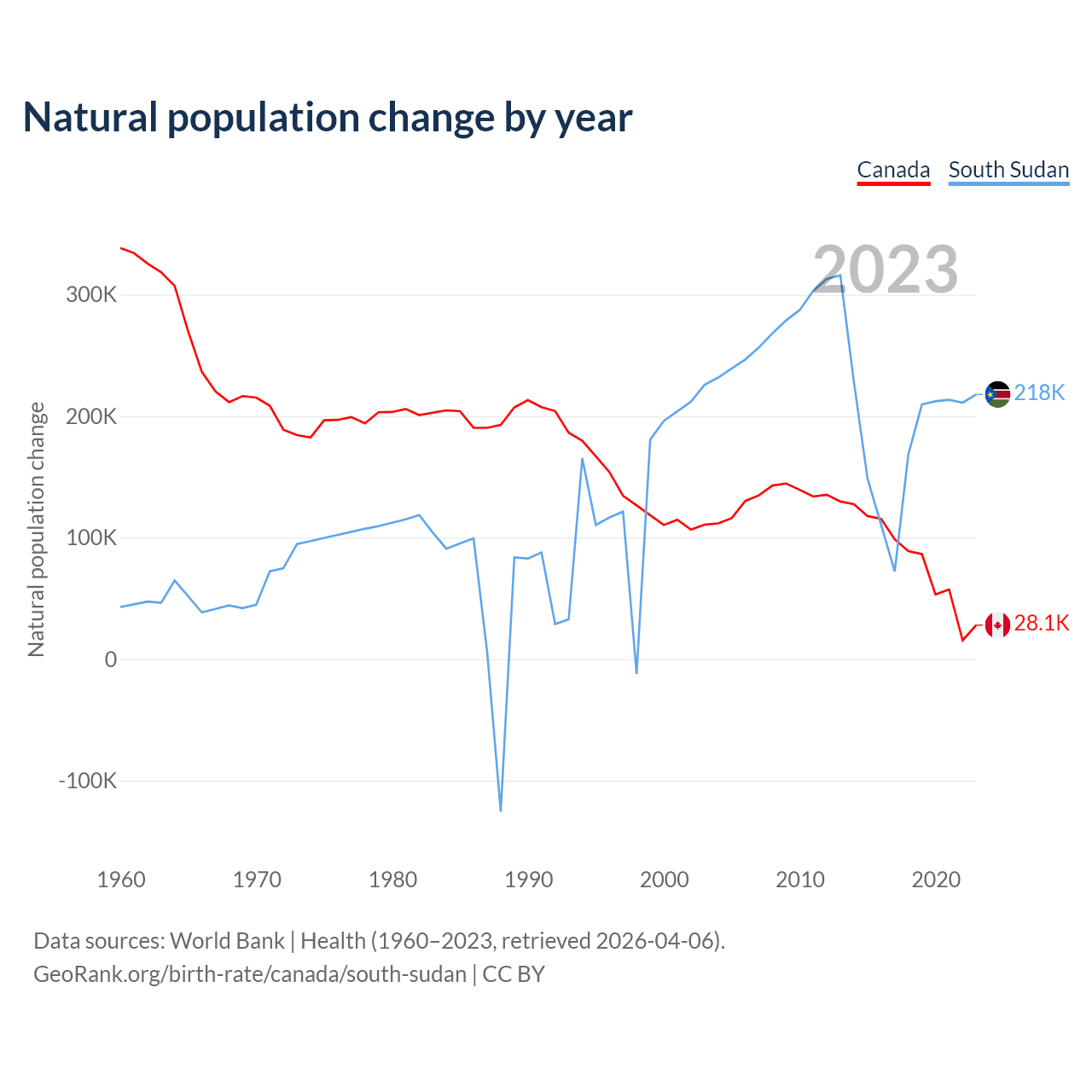 GeoRank.org/birth-rate/canada/south-sudan | CC BY
