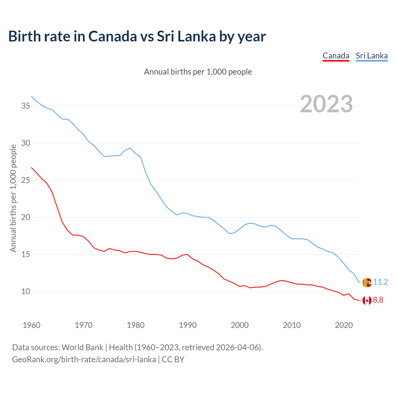GeoRank.org/birth-rate/canada/sri-lanka | CC BY
