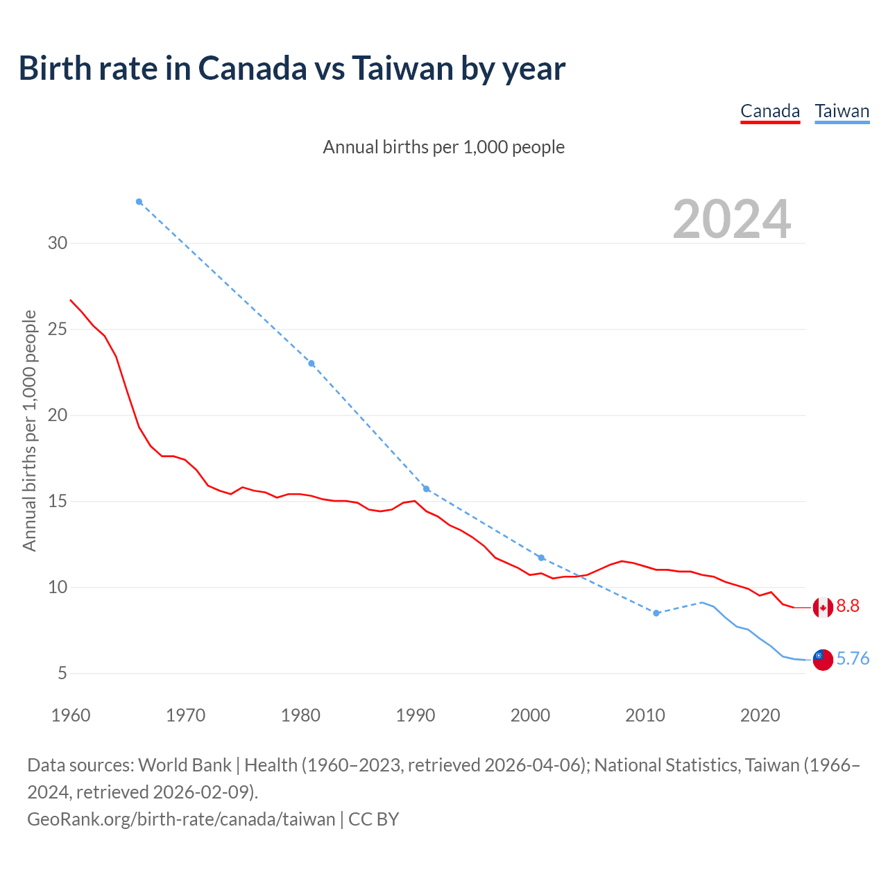 GeoRank.org/birth-rate/canada/taiwan | CC BY