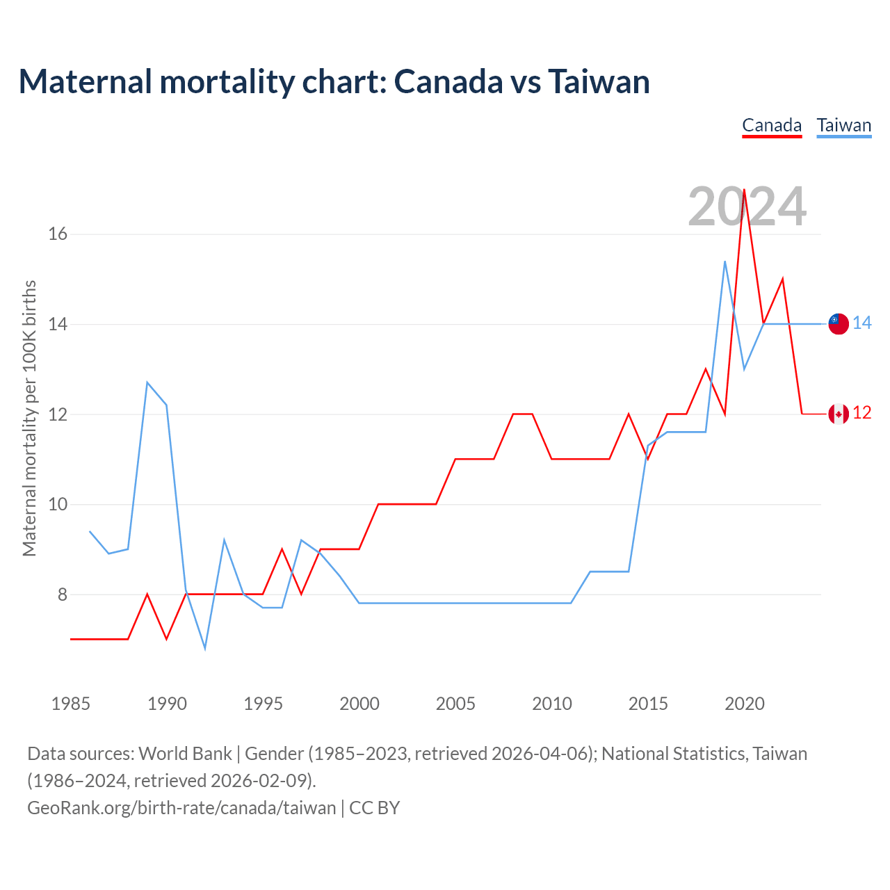 Maternal mortality chart: Canada vs Taiwan