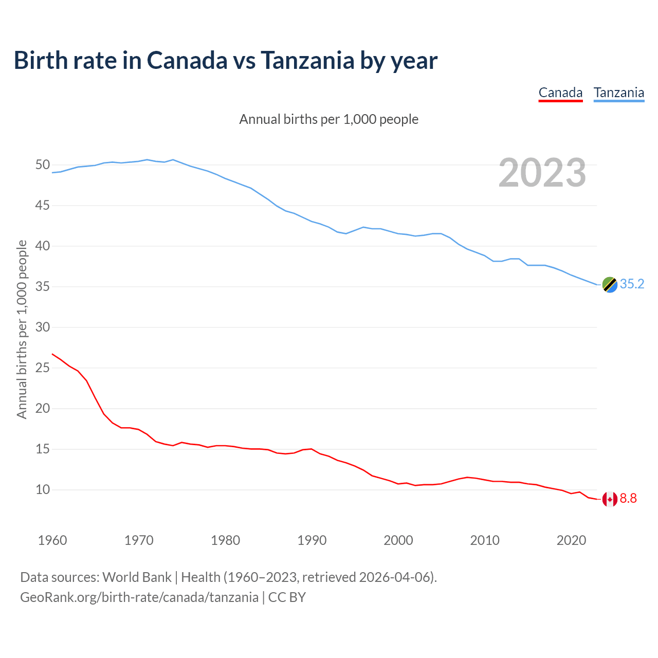 GeoRank.org/birth-rate/canada/tanzania | CC BY
