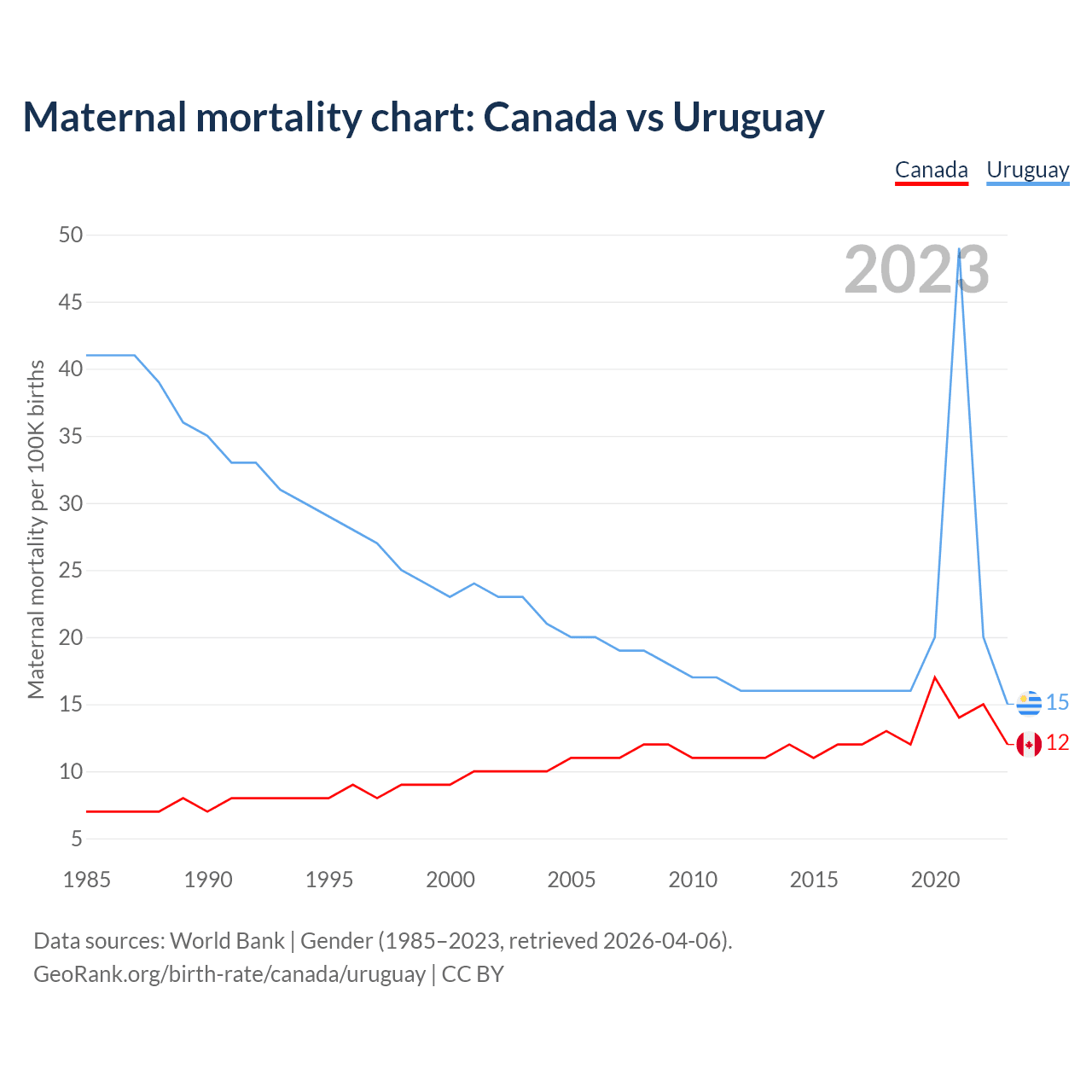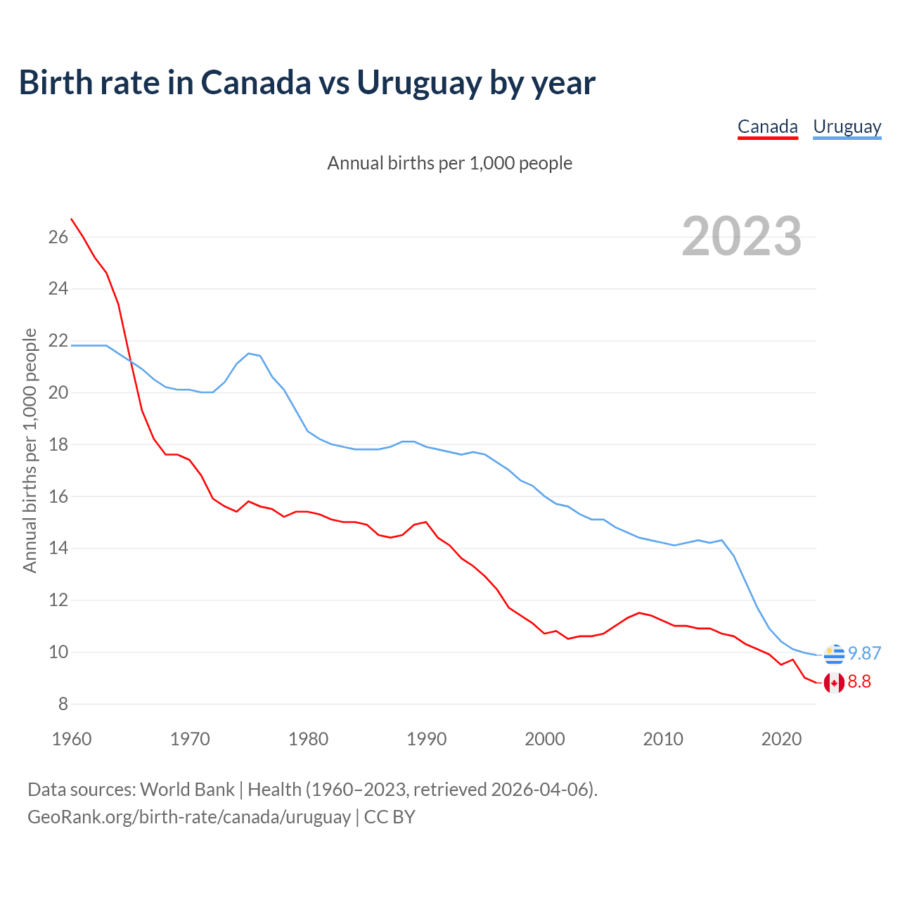 GeoRank.org/birth-rate/canada/uruguay | CC BY