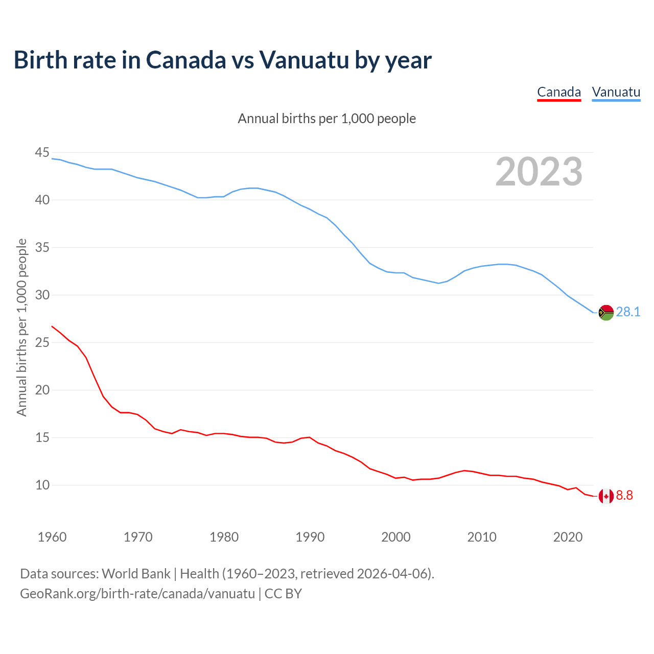 GeoRank.org/birth-rate/canada/vanuatu | CC BY