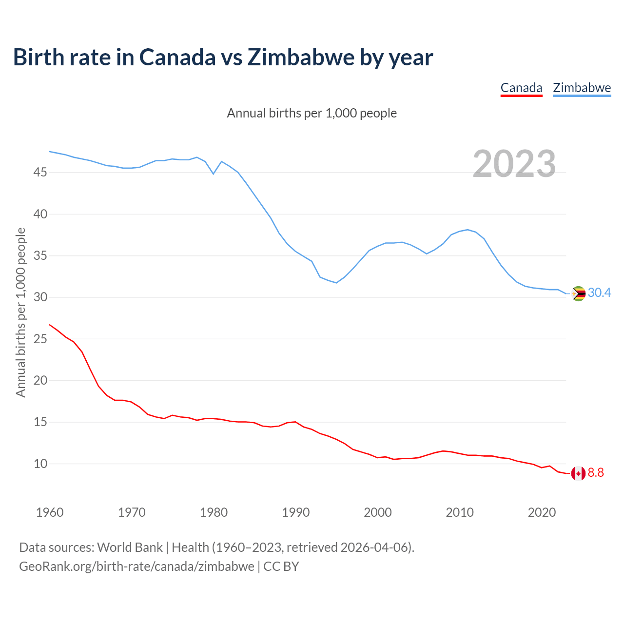 GeoRank.org/birth-rate/canada/zimbabwe | CC BY