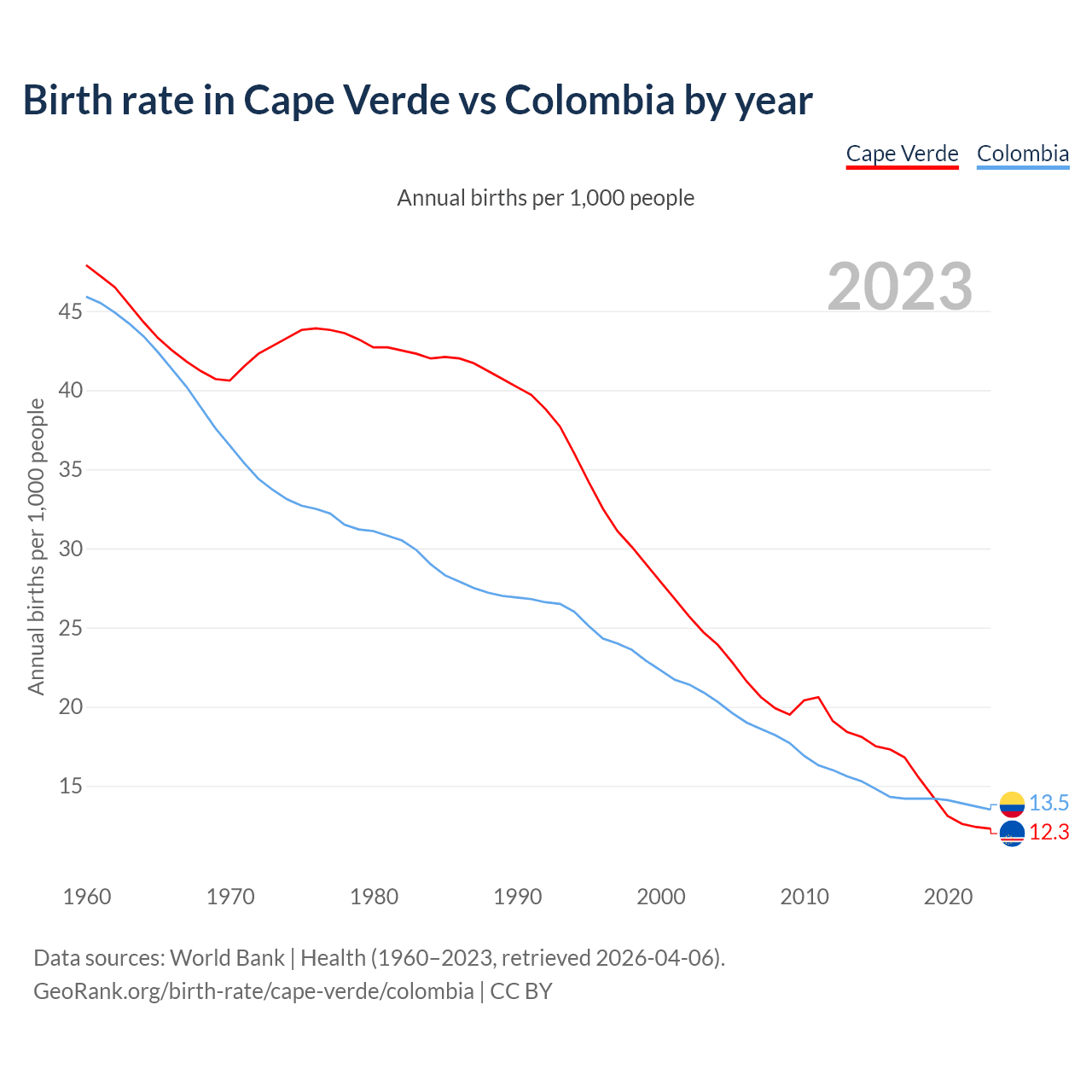 GeoRank.org/birth-rate/cape-verde/colombia | CC BY