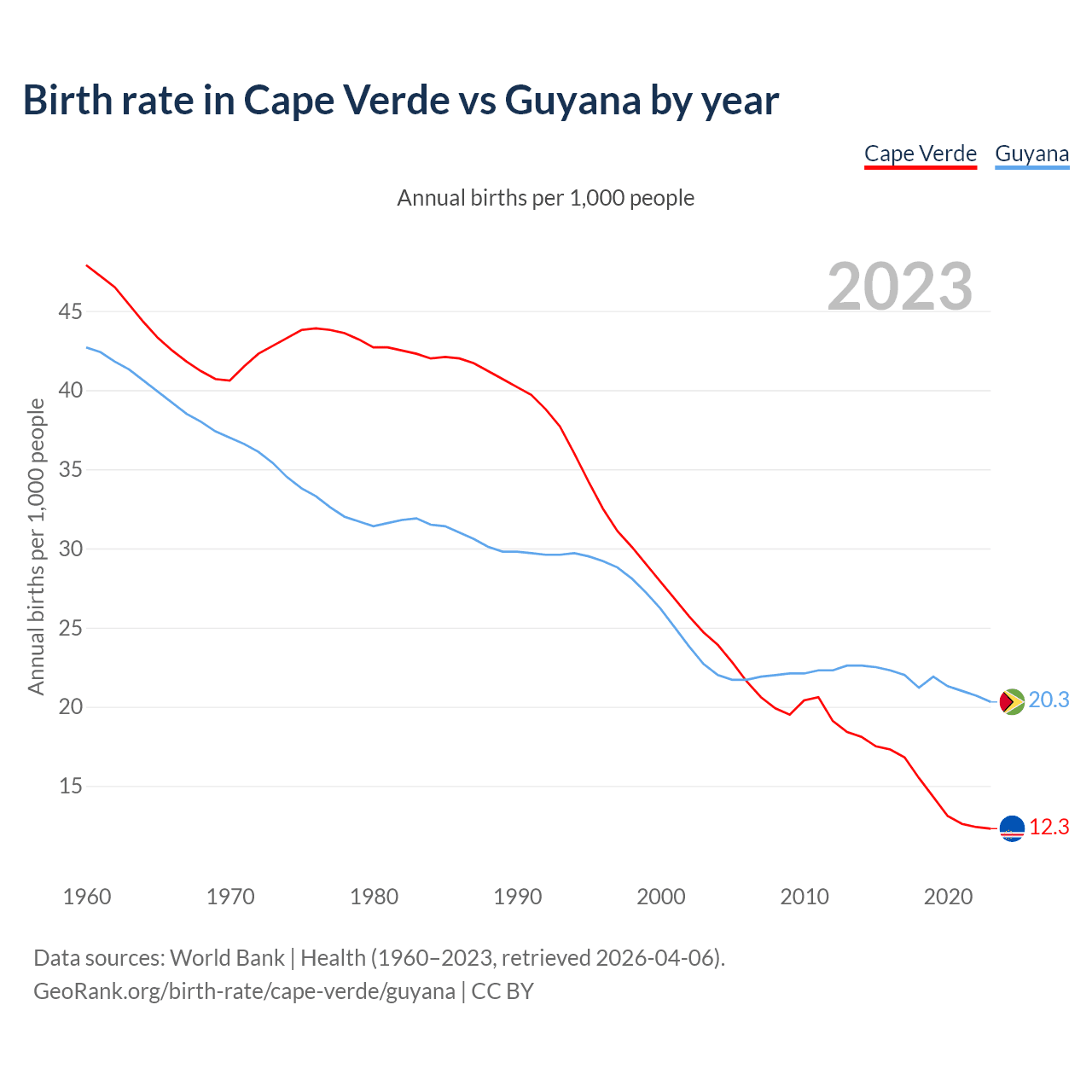GeoRank.org/birth-rate/cape-verde/guyana | CC BY