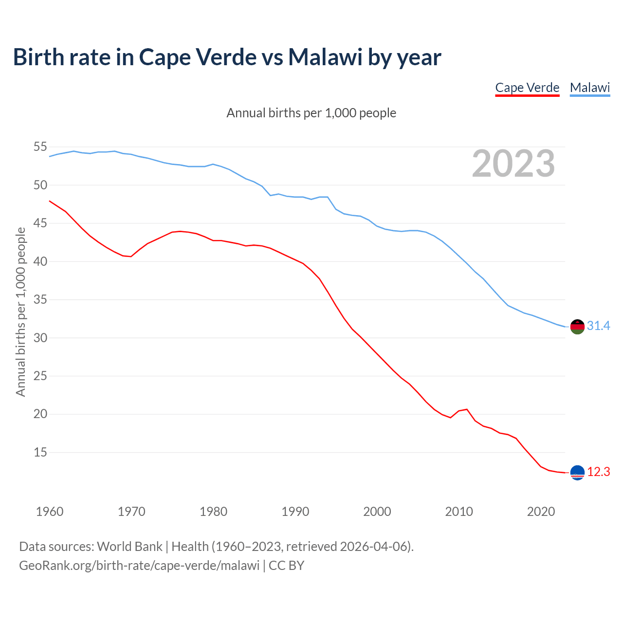 GeoRank.org/birth-rate/cape-verde/malawi | CC BY