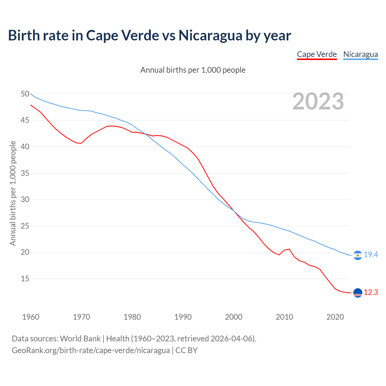 GeoRank.org/birth-rate/cape-verde/nicaragua | CC BY