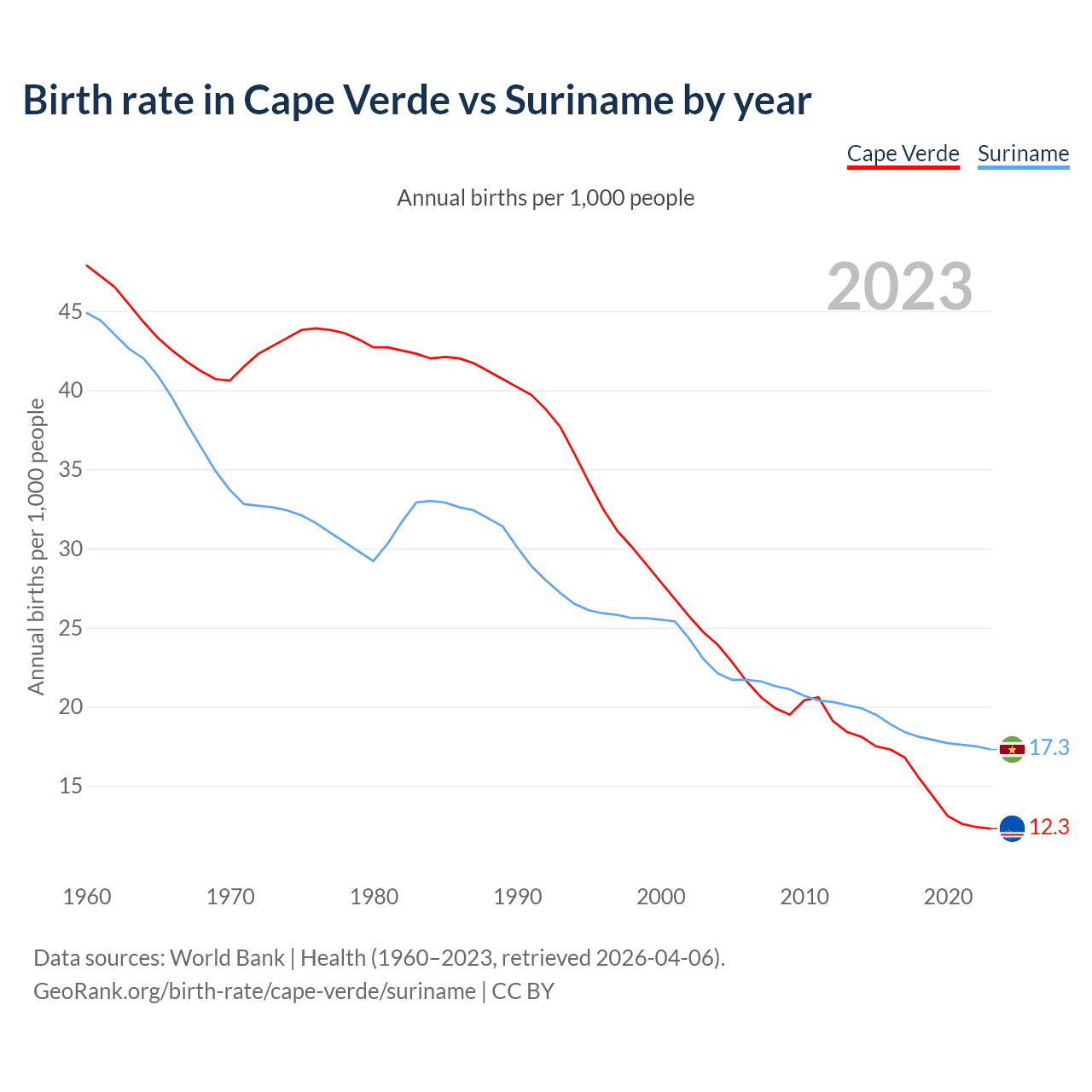 GeoRank.org/birth-rate/cape-verde/suriname | CC BY