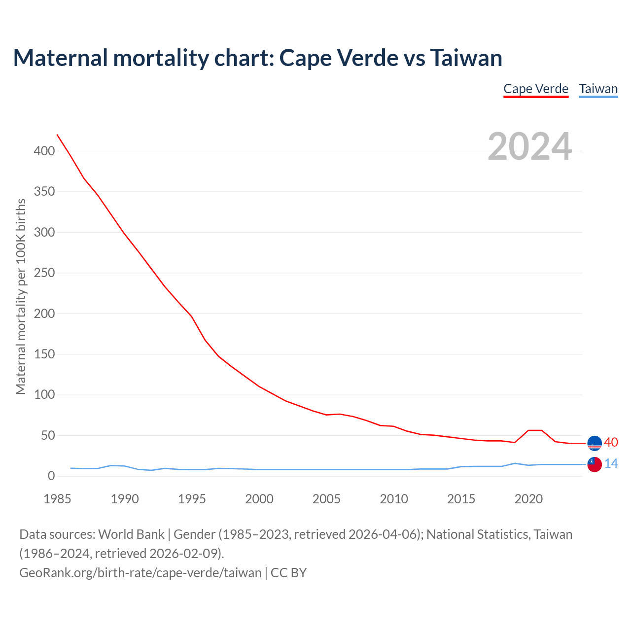 Maternal mortality chart: Cape Verde vs Taiwan