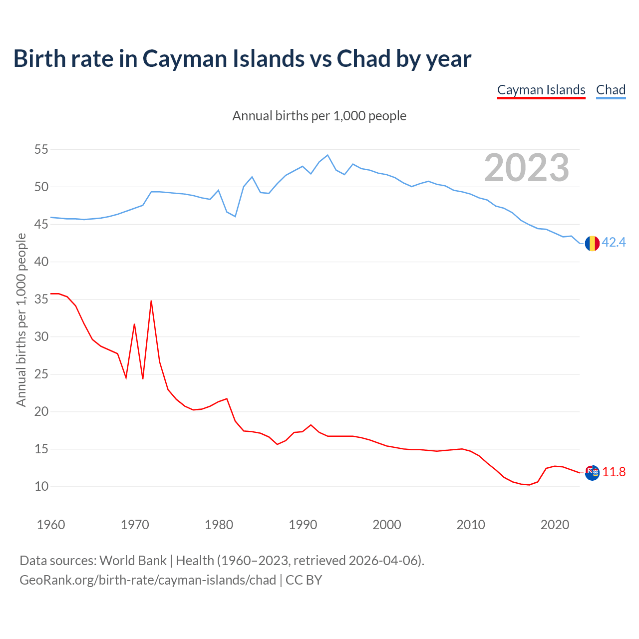 GeoRank.org/birth-rate/cayman-islands/chad | CC BY