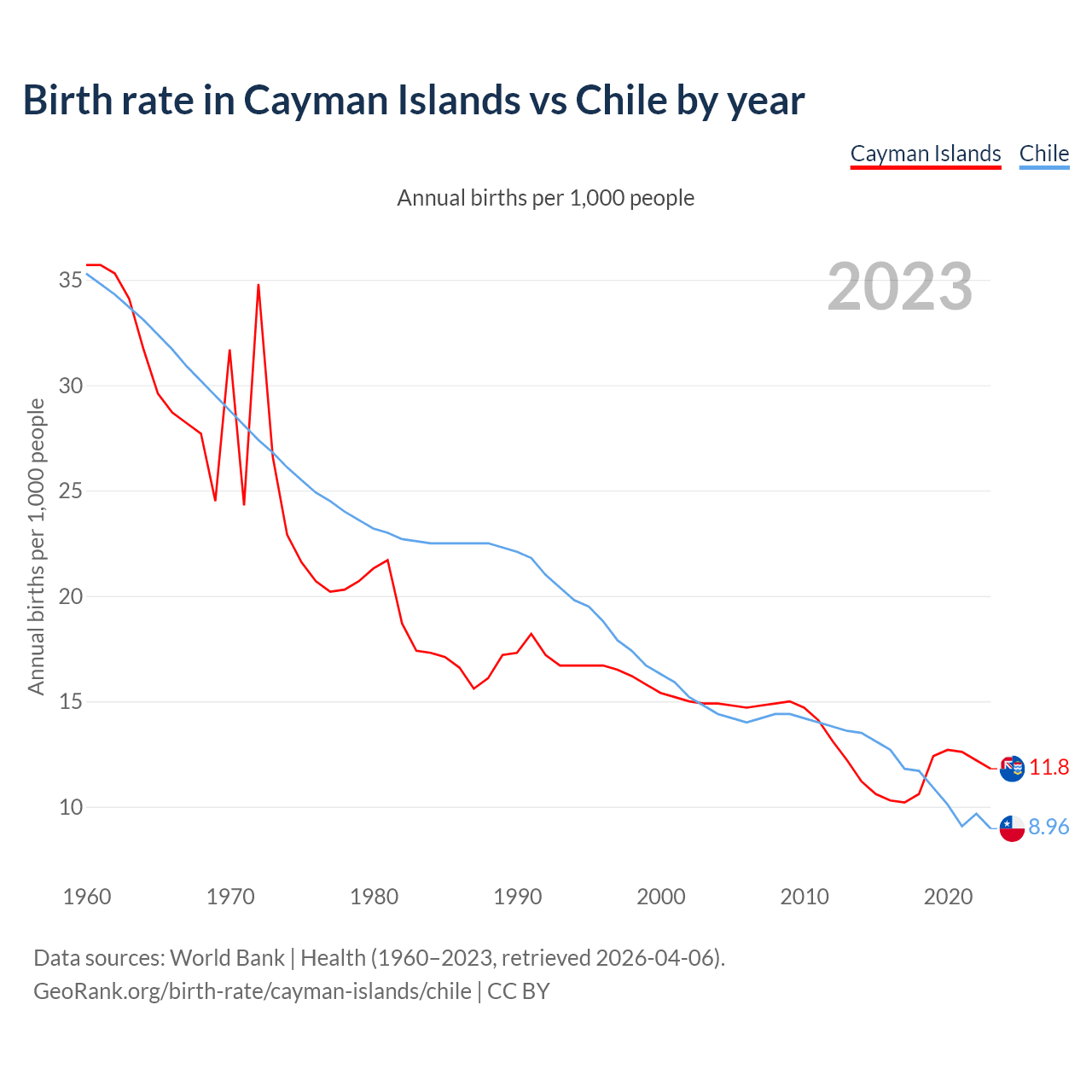GeoRank.org/birth-rate/cayman-islands/chile | CC BY