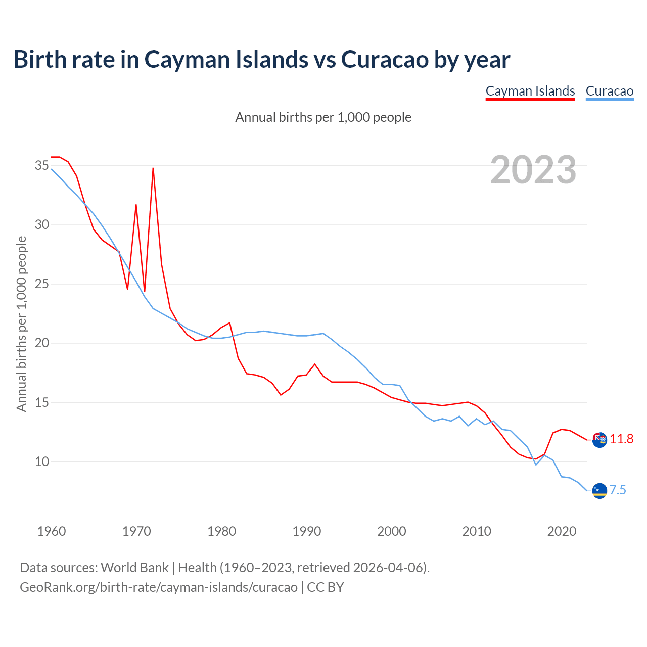 GeoRank.org/birth-rate/cayman-islands/curacao | CC BY