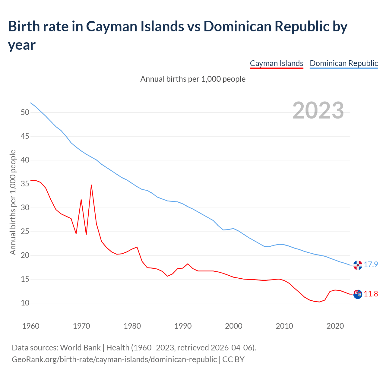 GeoRank.org/birth-rate/cayman-islands/dominican-republic | CC BY