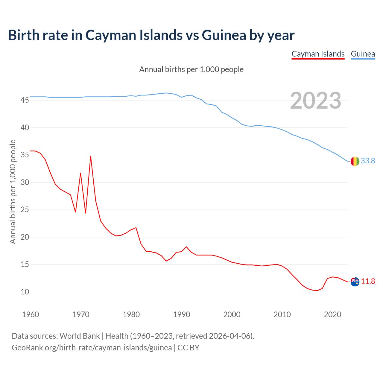 GeoRank.org/birth-rate/cayman-islands/guinea | CC BY