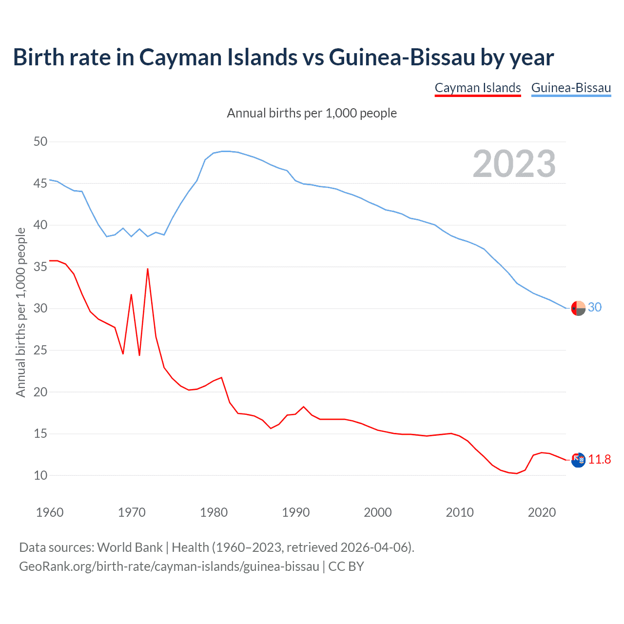 GeoRank.org/birth-rate/cayman-islands/guinea-bissau | CC BY