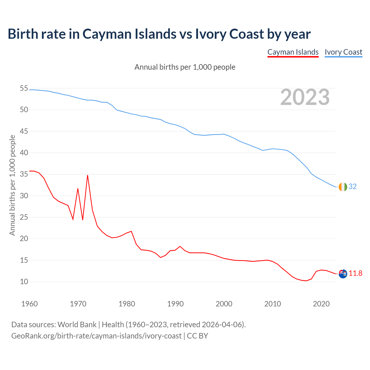 GeoRank.org/birth-rate/cayman-islands/ivory-coast | CC BY