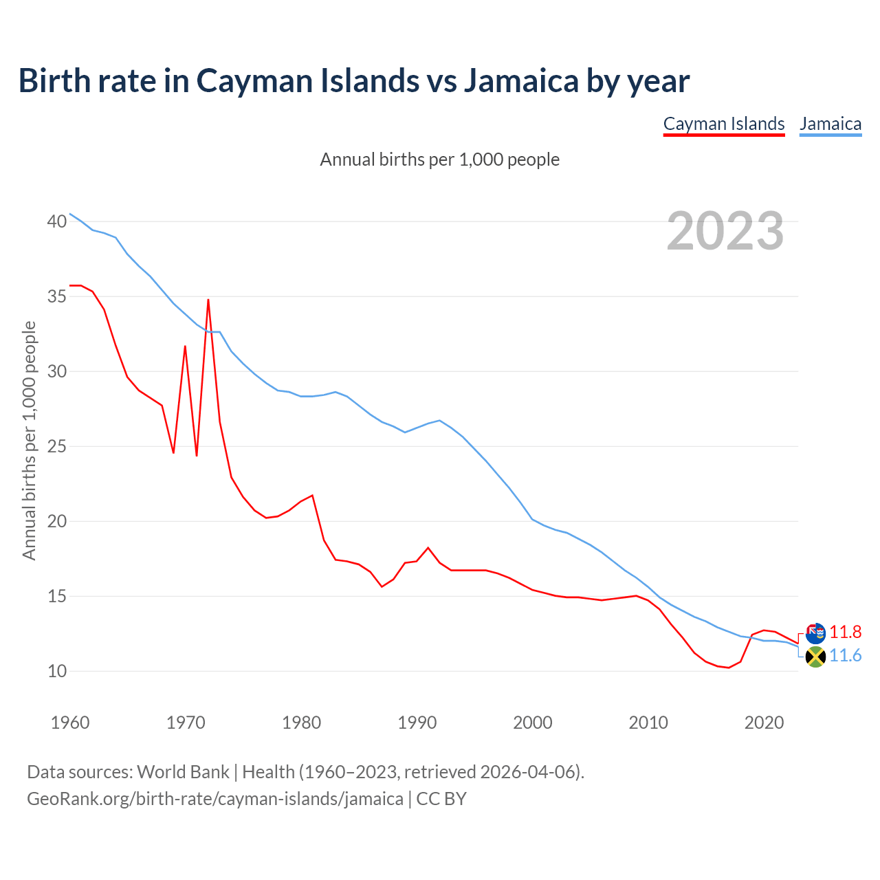 GeoRank.org/birth-rate/cayman-islands/jamaica | CC BY