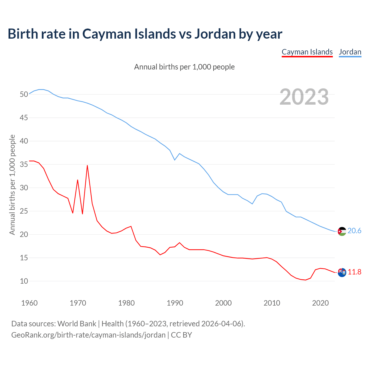 GeoRank.org/birth-rate/cayman-islands/jordan | CC BY