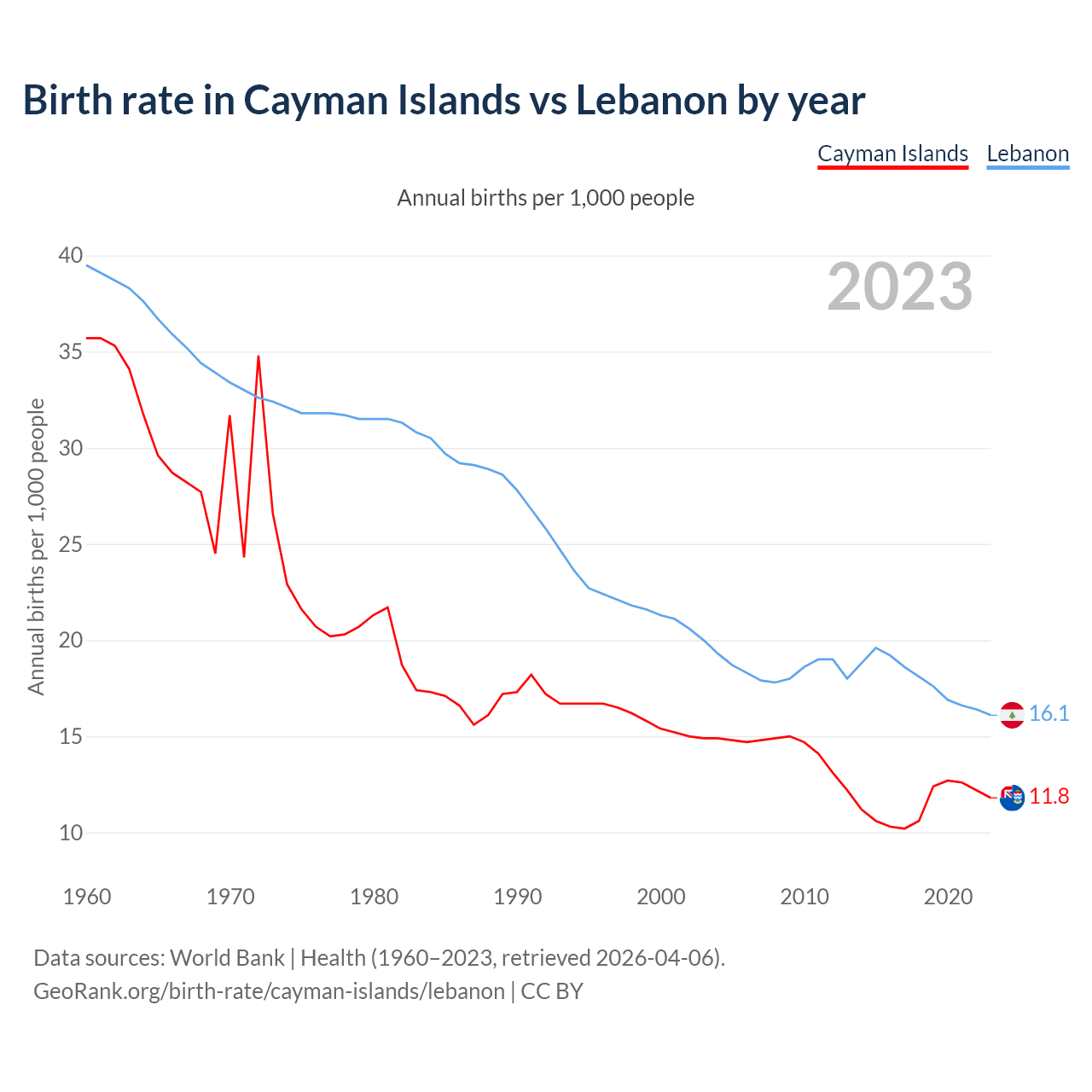 GeoRank.org/birth-rate/cayman-islands/lebanon | CC BY