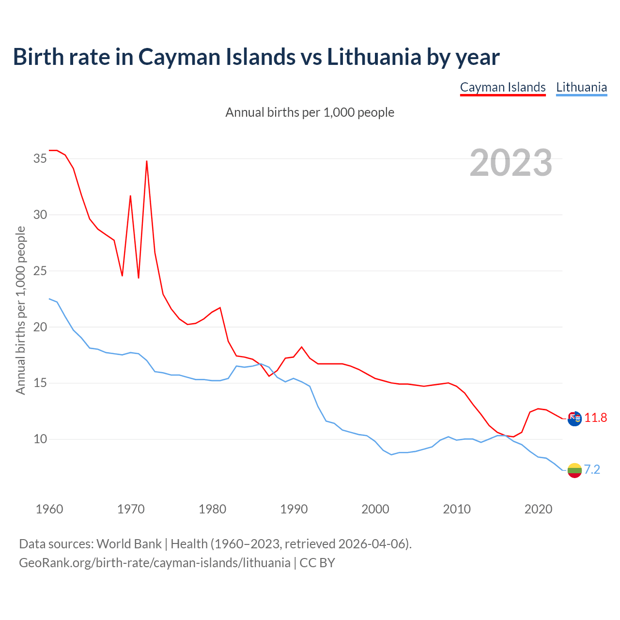 GeoRank.org/birth-rate/cayman-islands/lithuania | CC BY