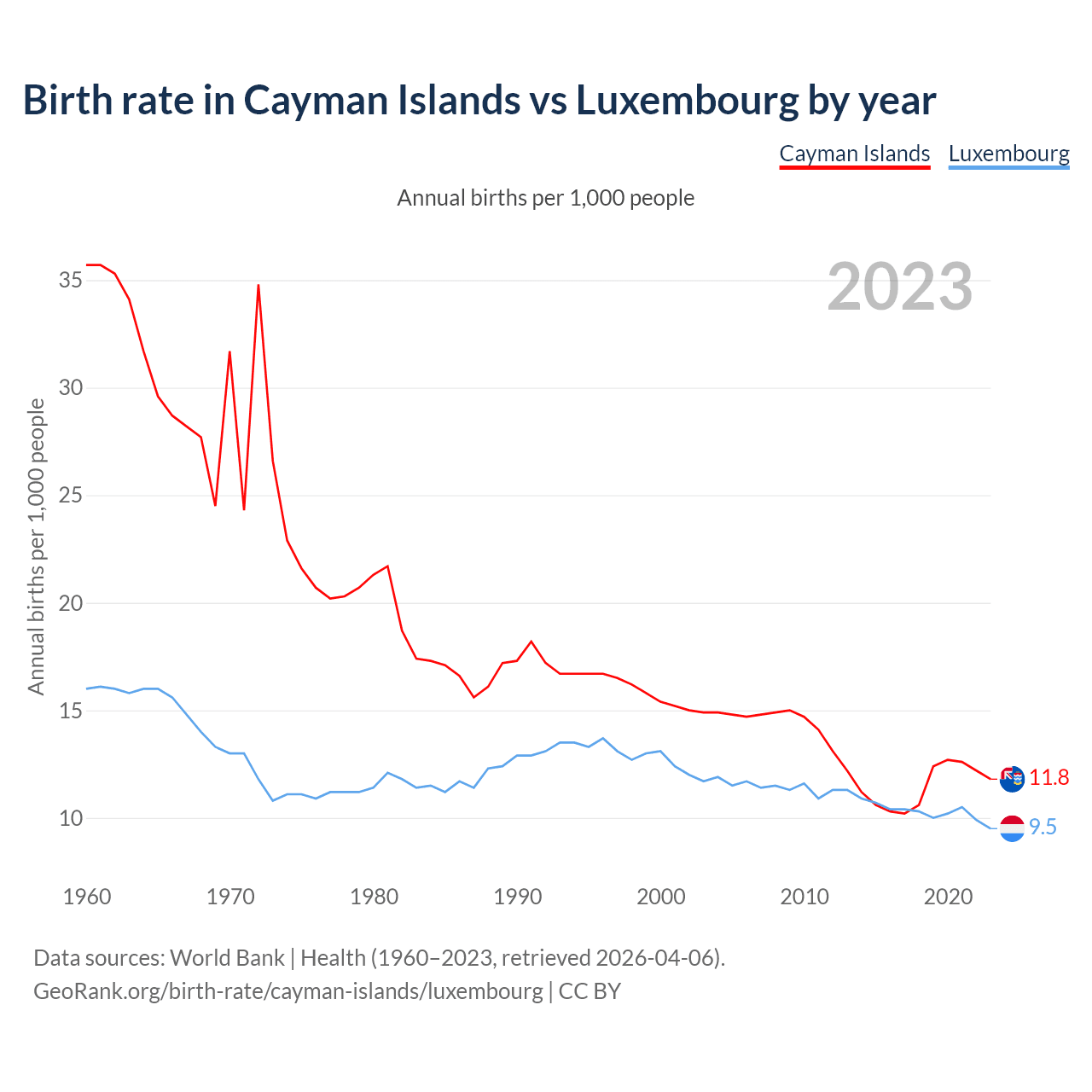 GeoRank.org/birth-rate/cayman-islands/luxembourg | CC BY