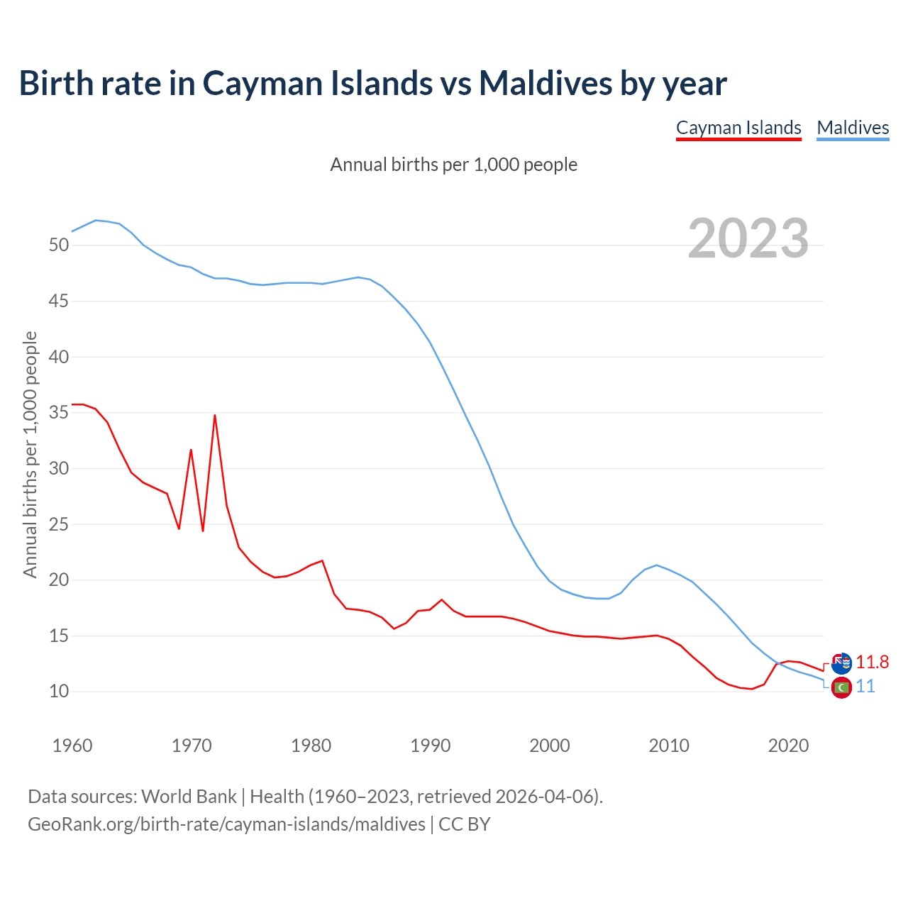 GeoRank.org/birth-rate/cayman-islands/maldives | CC BY