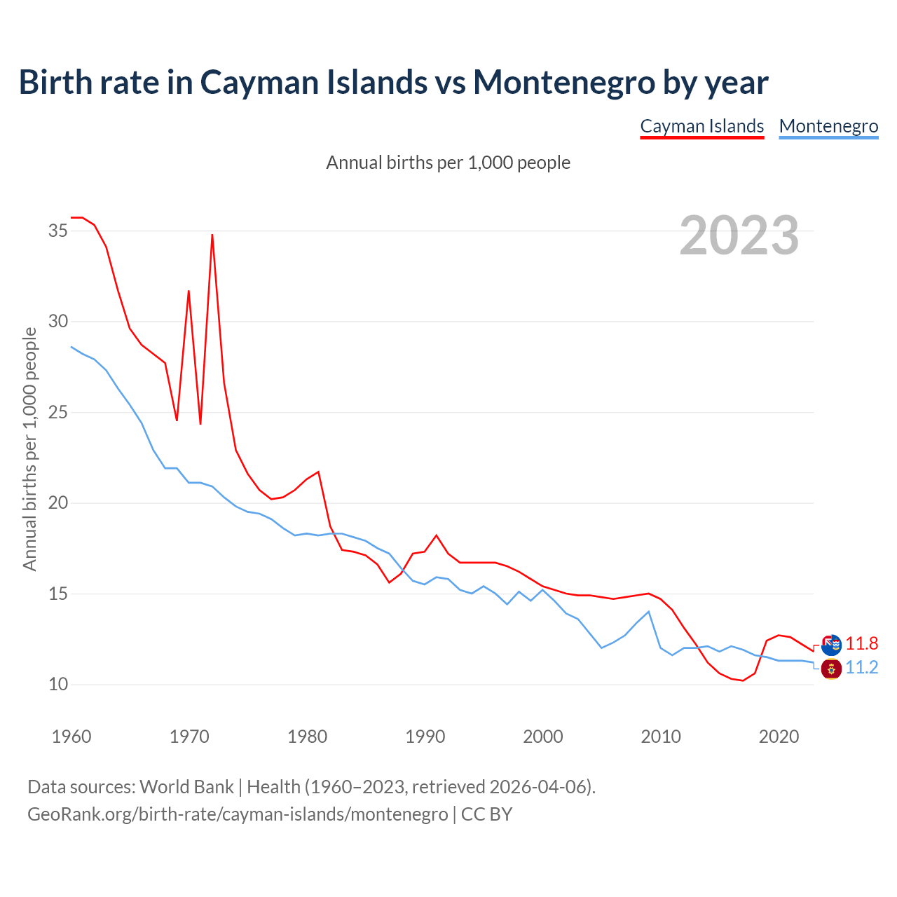 GeoRank.org/birth-rate/cayman-islands/montenegro | CC BY