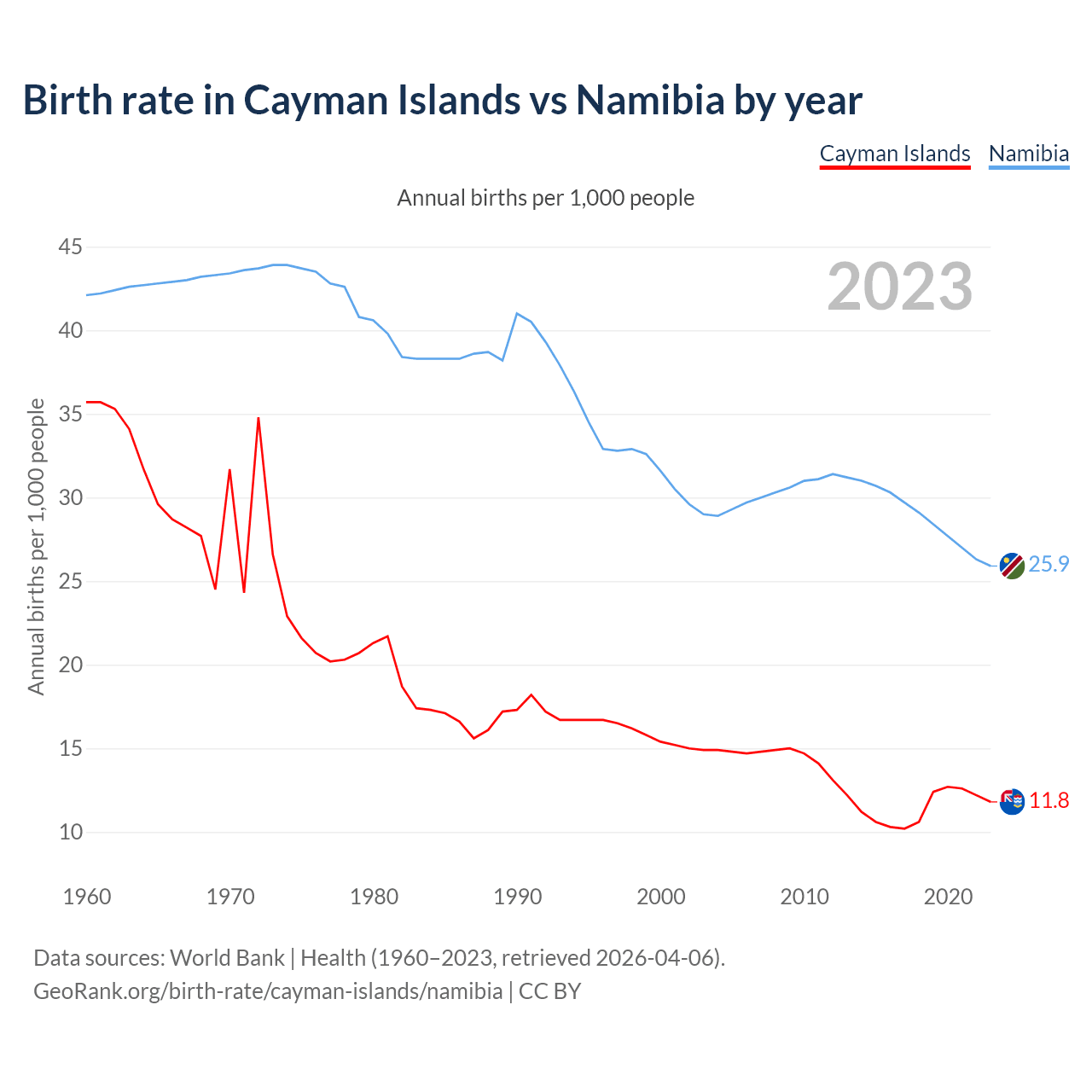 GeoRank.org/birth-rate/cayman-islands/namibia | CC BY