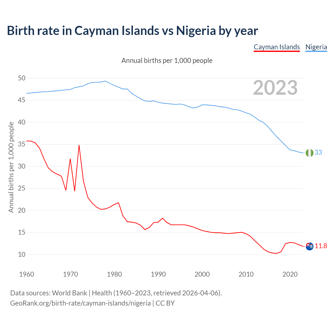 GeoRank.org/birth-rate/cayman-islands/nigeria | CC BY