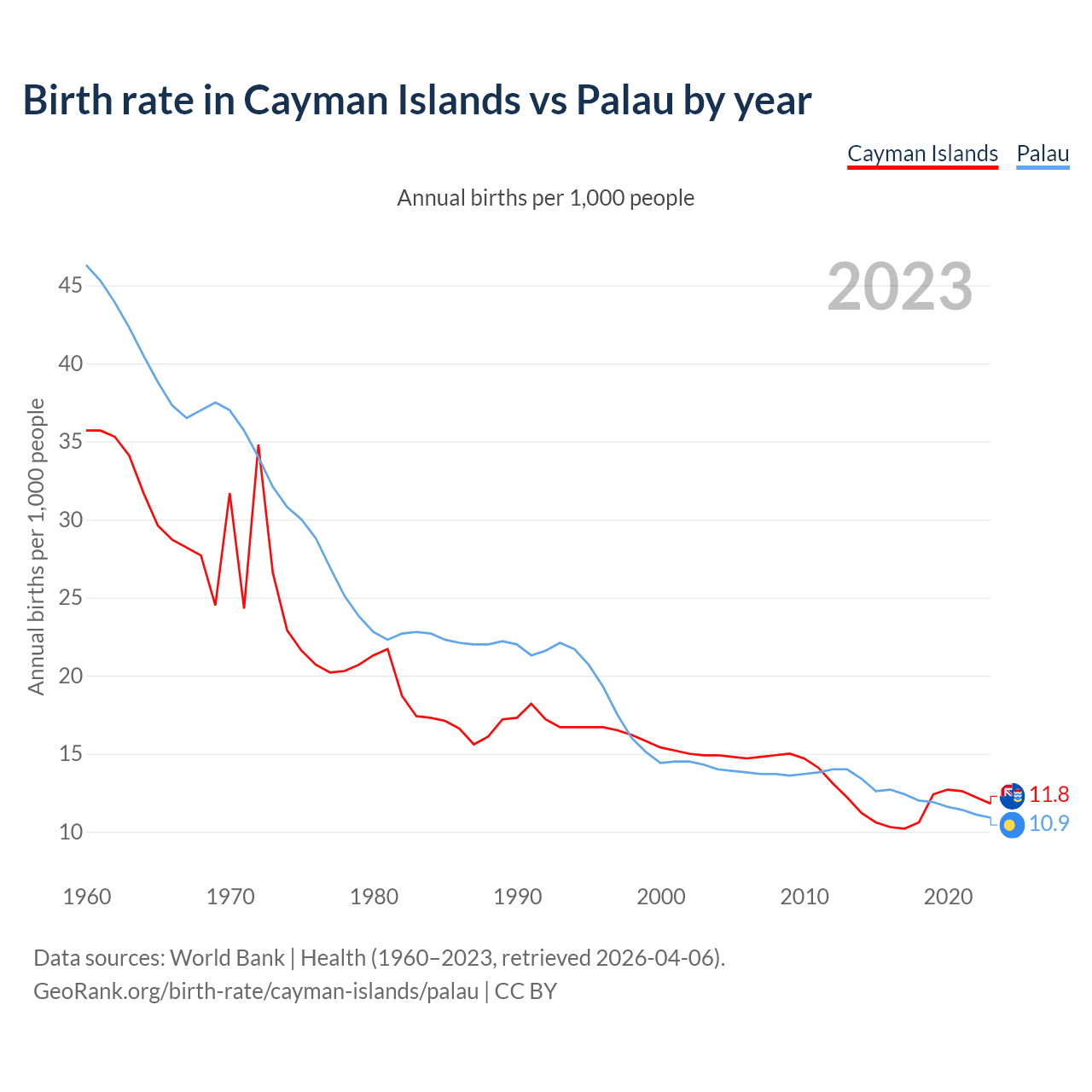 GeoRank.org/birth-rate/cayman-islands/palau | CC BY