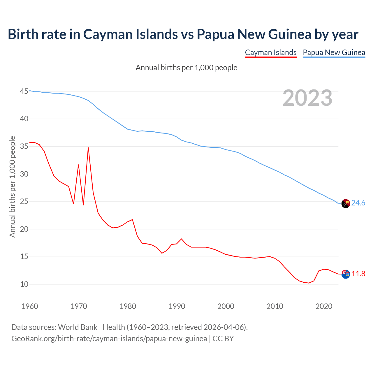 GeoRank.org/birth-rate/cayman-islands/papua-new-guinea | CC BY