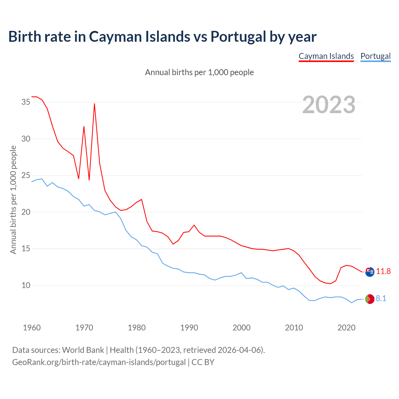 GeoRank.org/birth-rate/cayman-islands/portugal | CC BY