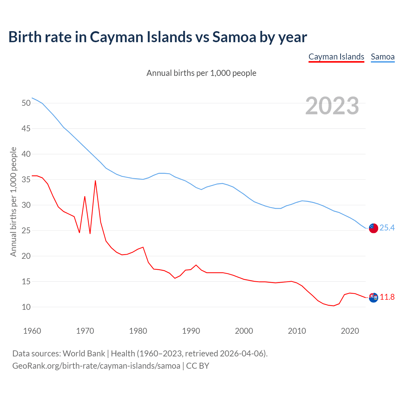 GeoRank.org/birth-rate/cayman-islands/samoa | CC BY