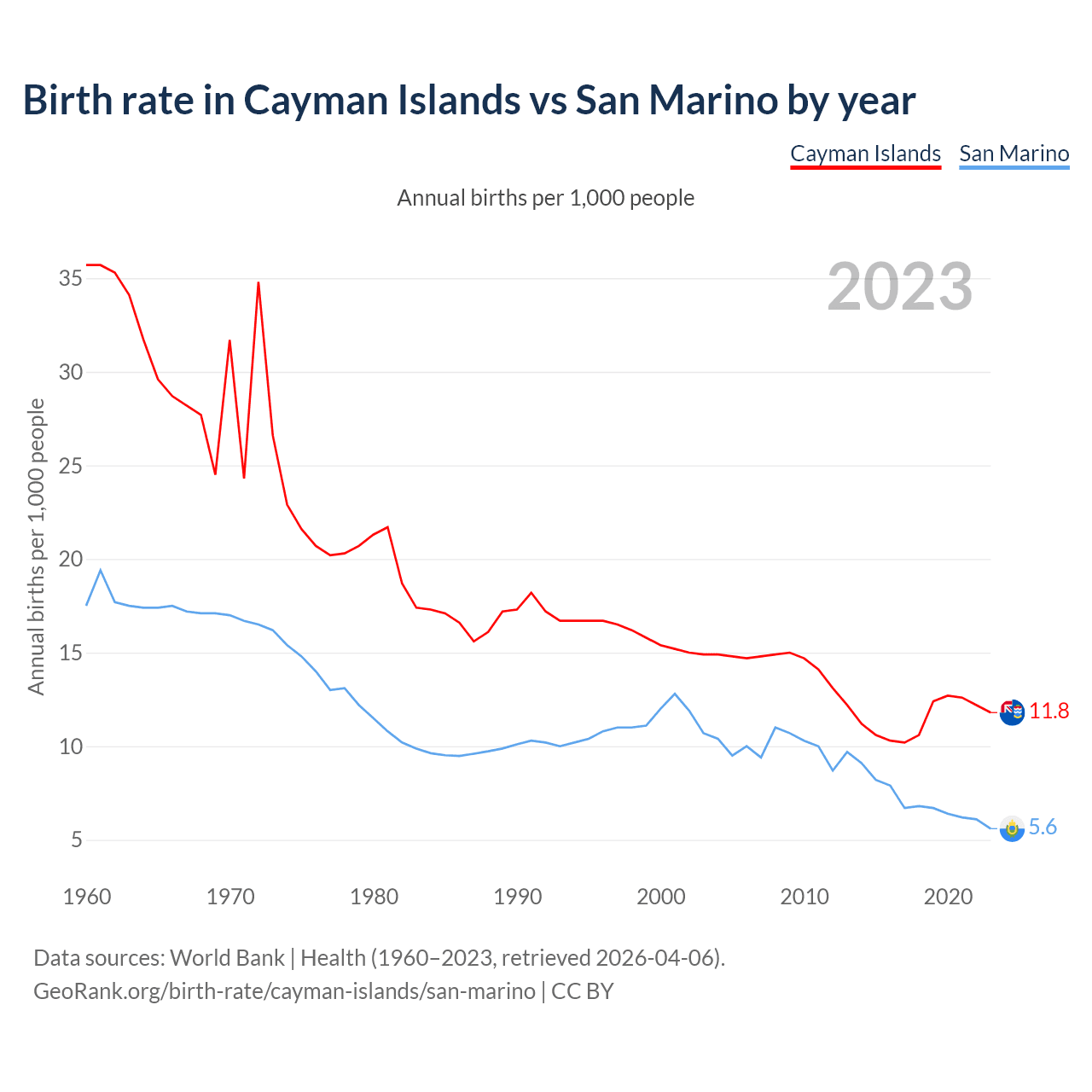 GeoRank.org/birth-rate/cayman-islands/san-marino | CC BY