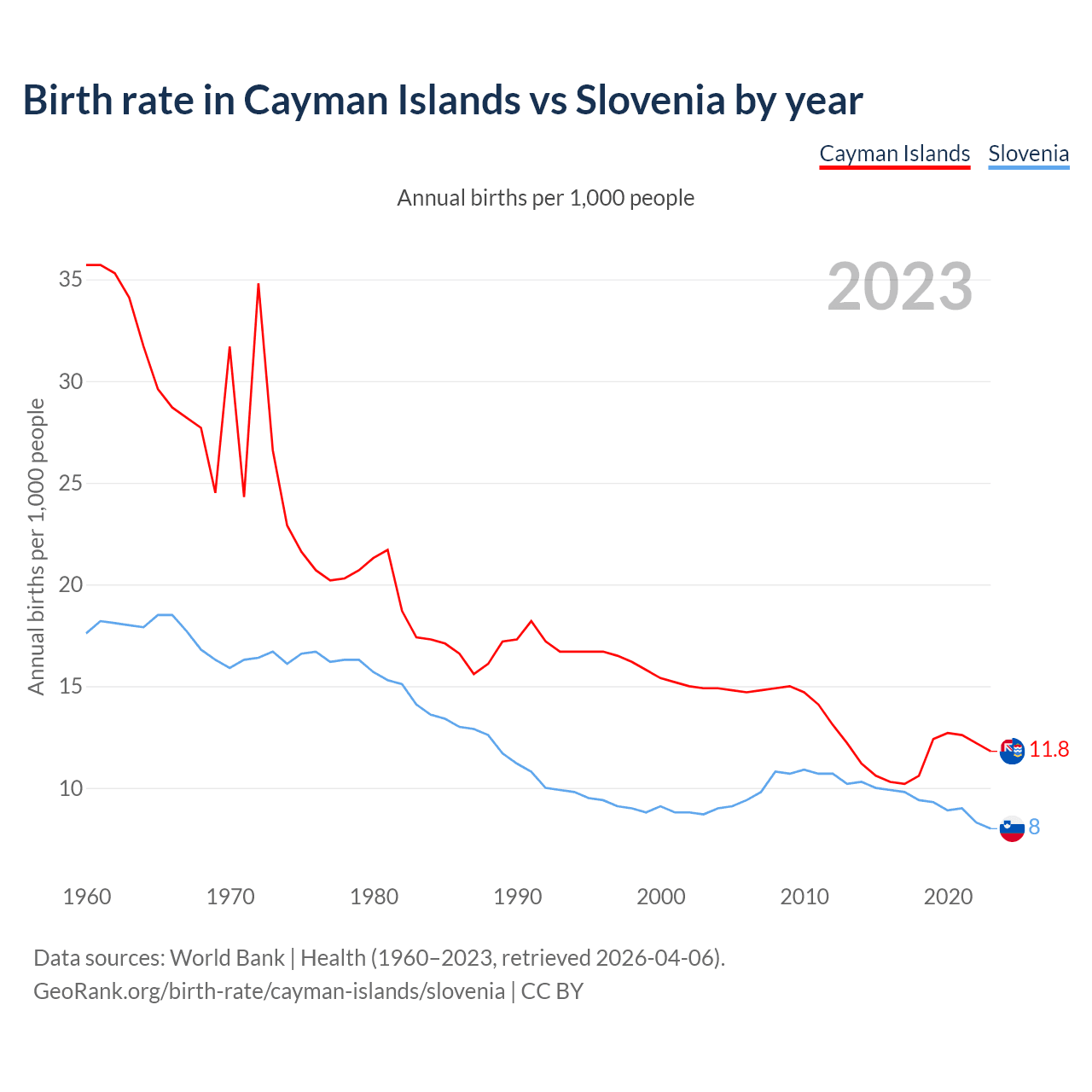 GeoRank.org/birth-rate/cayman-islands/slovenia | CC BY