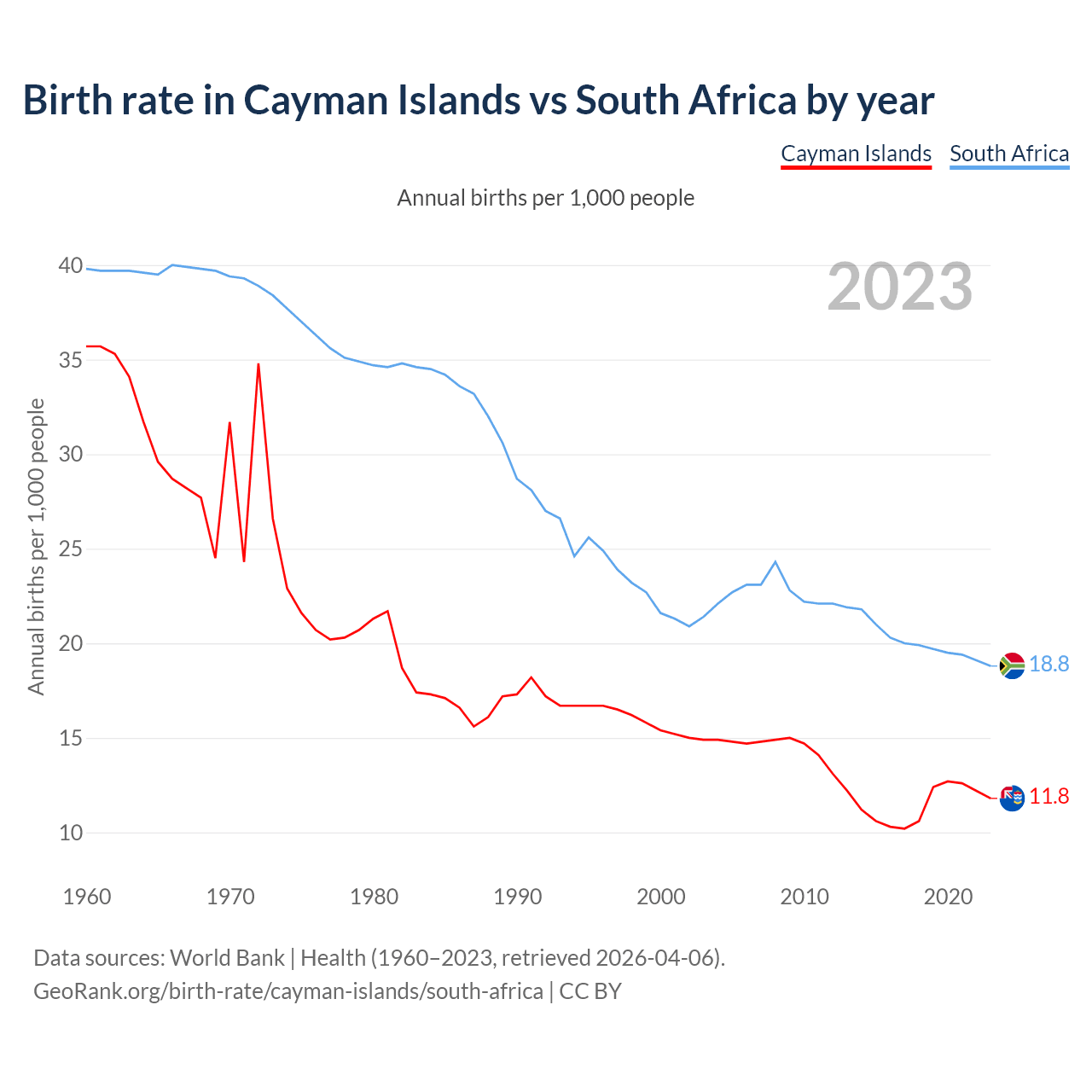 GeoRank.org/birth-rate/cayman-islands/south-africa | CC BY
