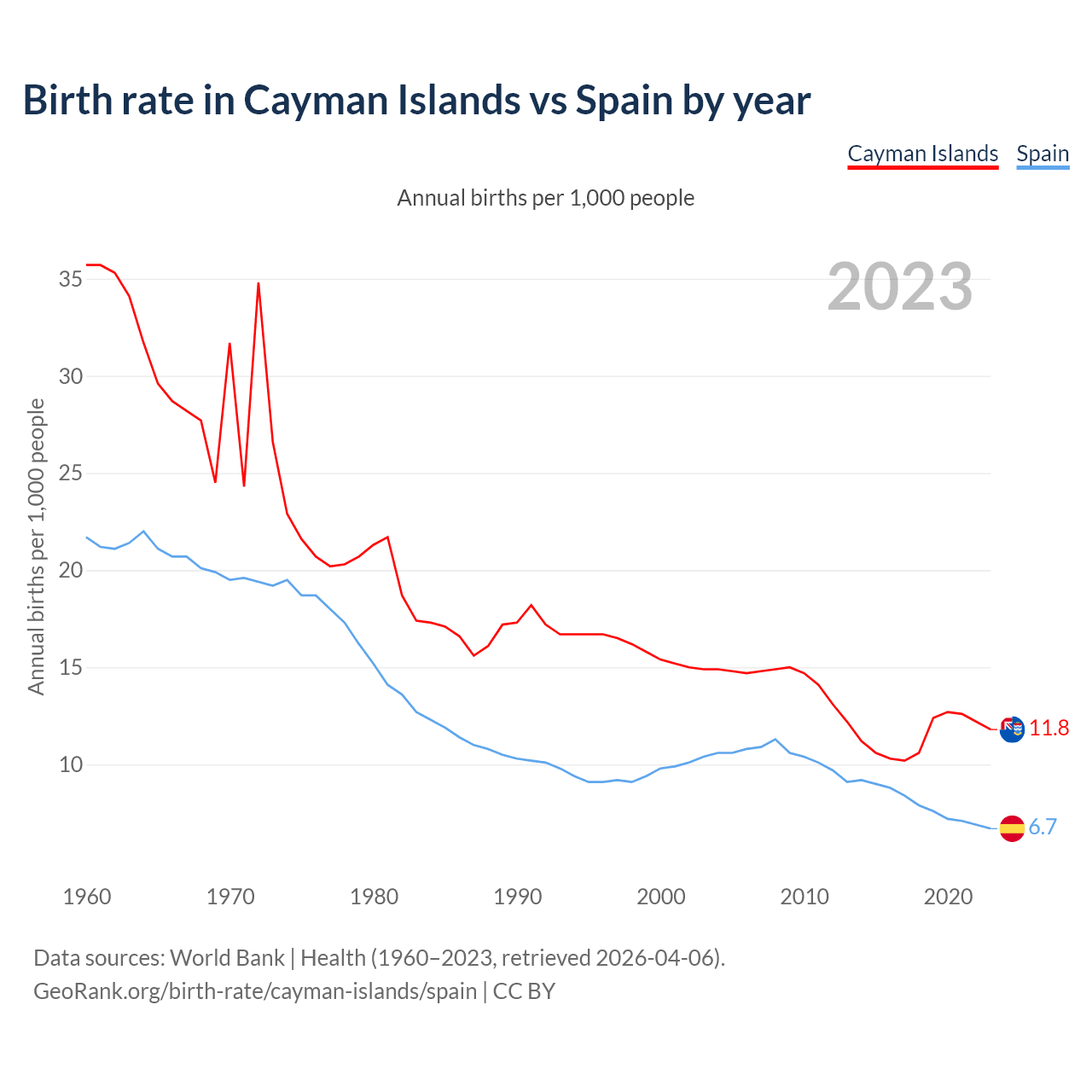 GeoRank.org/birth-rate/cayman-islands/spain | CC BY