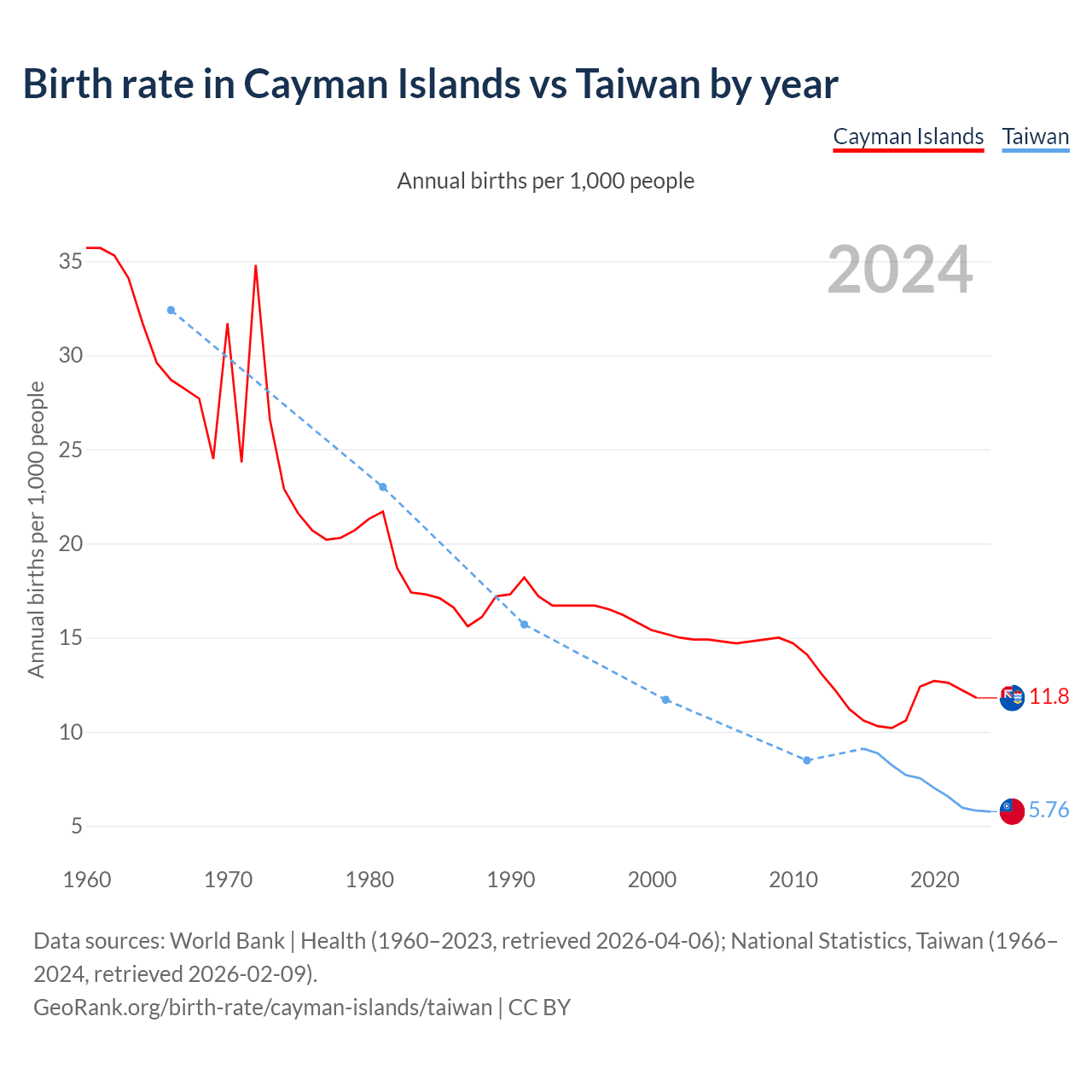GeoRank.org/birth-rate/cayman-islands/taiwan | CC BY