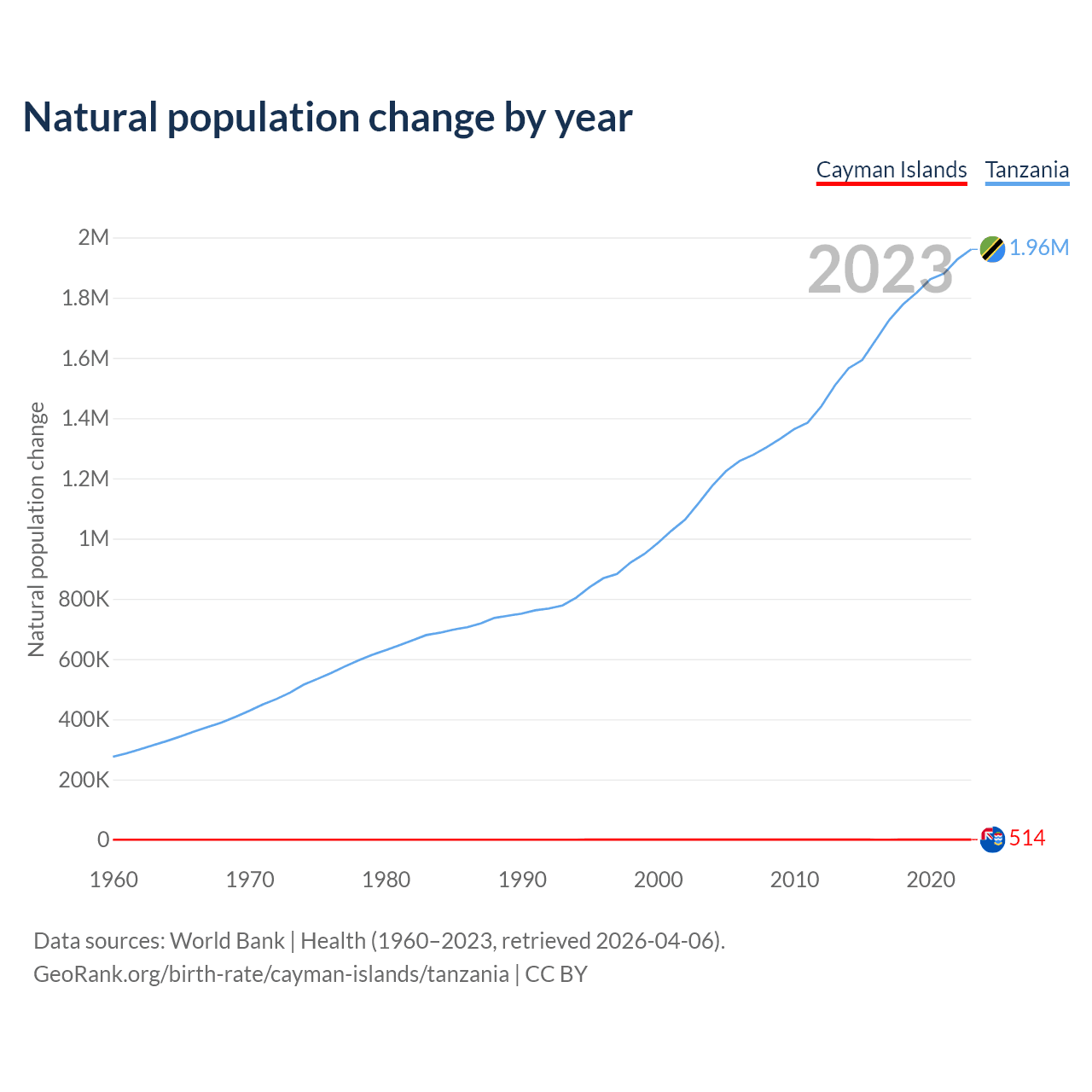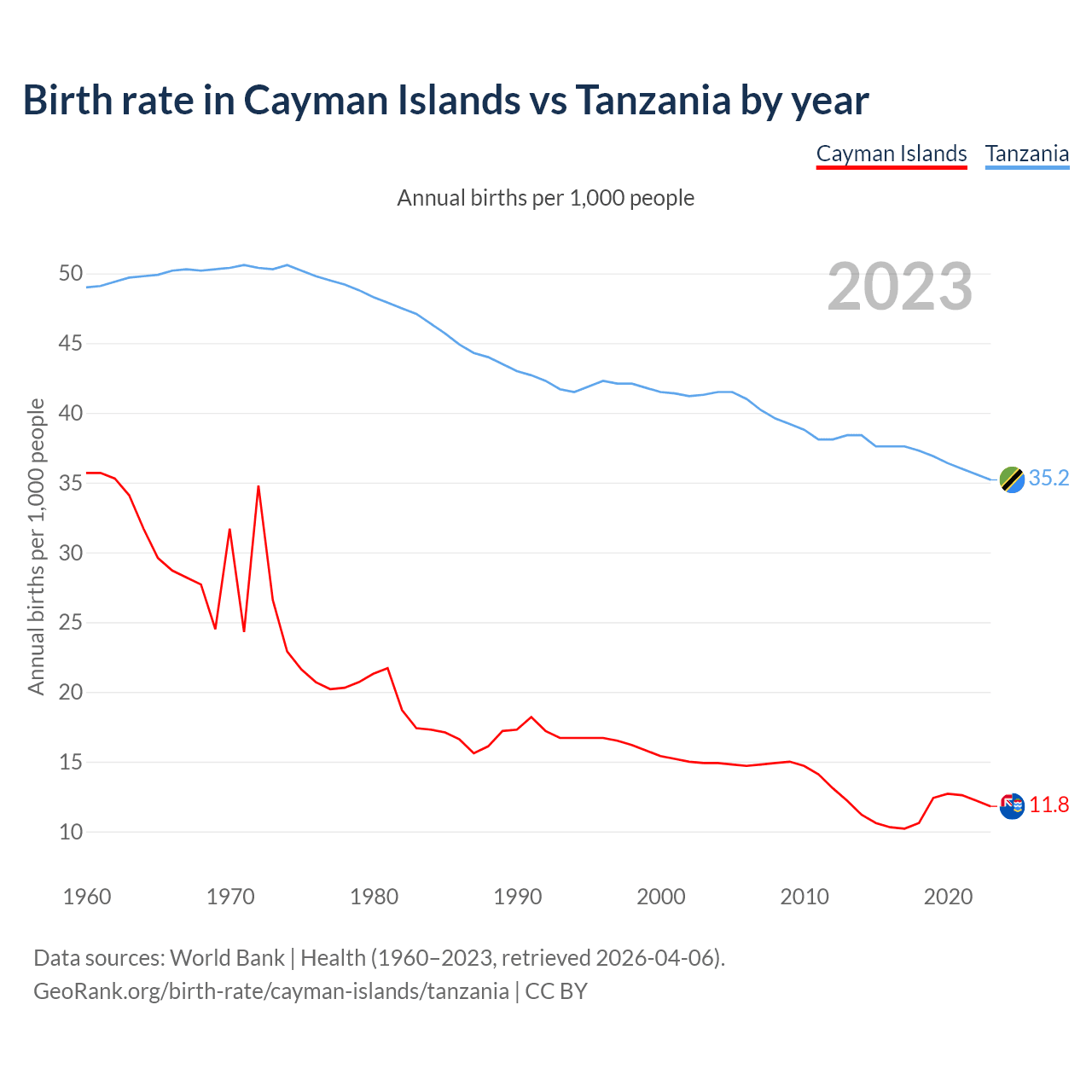GeoRank.org/birth-rate/cayman-islands/tanzania | CC BY