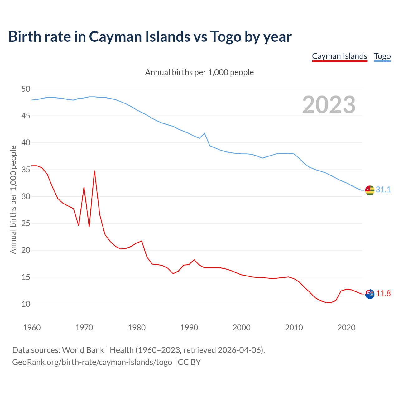 GeoRank.org/birth-rate/cayman-islands/togo | CC BY