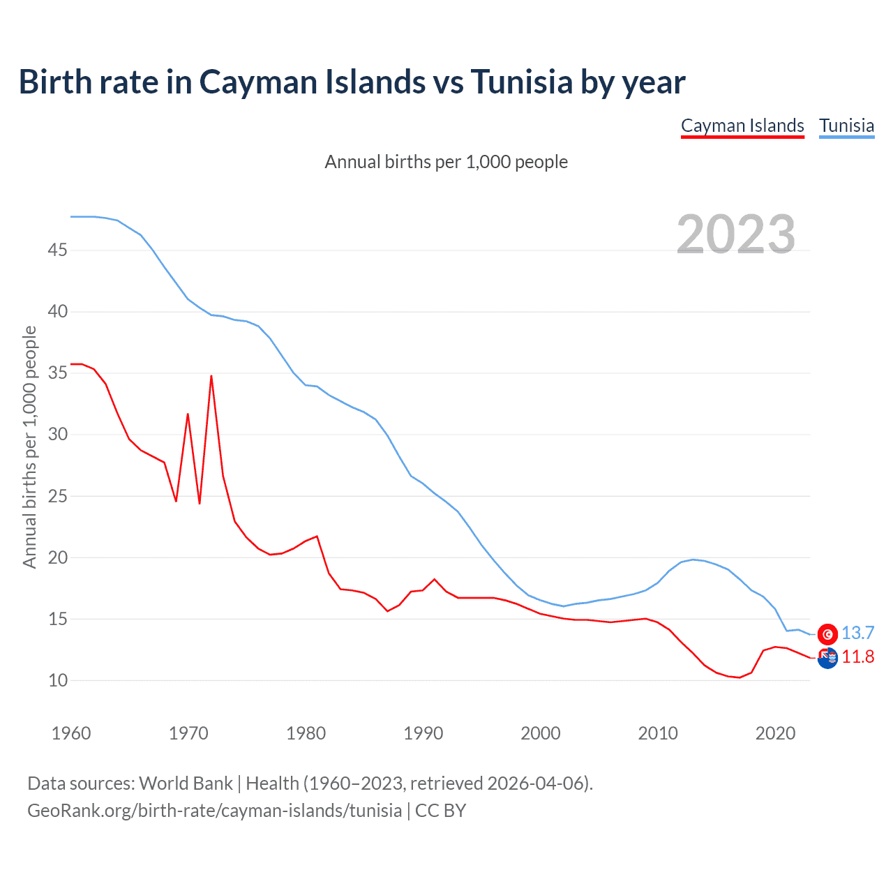 GeoRank.org/birth-rate/cayman-islands/tunisia | CC BY