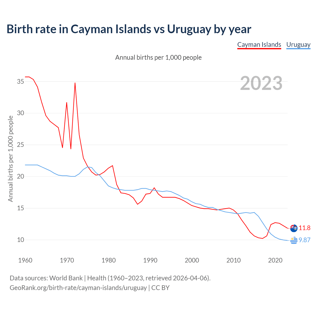 GeoRank.org/birth-rate/cayman-islands/uruguay | CC BY