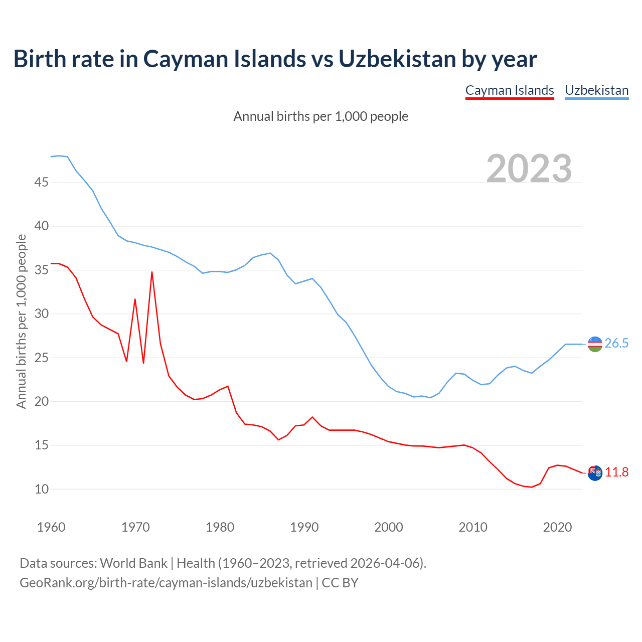 GeoRank.org/birth-rate/cayman-islands/uzbekistan | CC BY