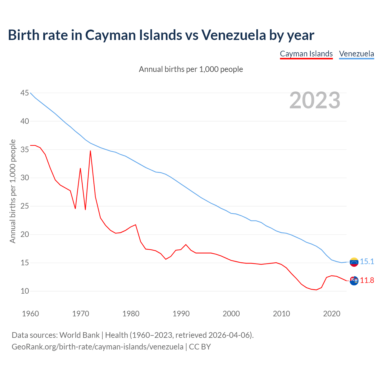 GeoRank.org/birth-rate/cayman-islands/venezuela | CC BY