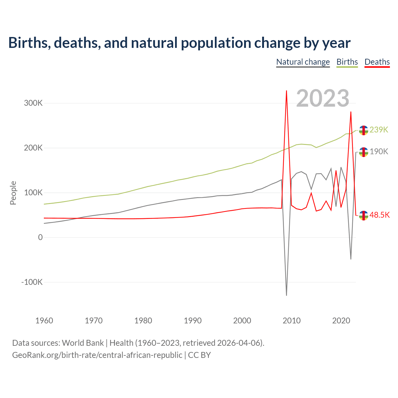 - The Central African Republic is ranked 1/196 by birth rate now and was ranked 101/194 in 1960.