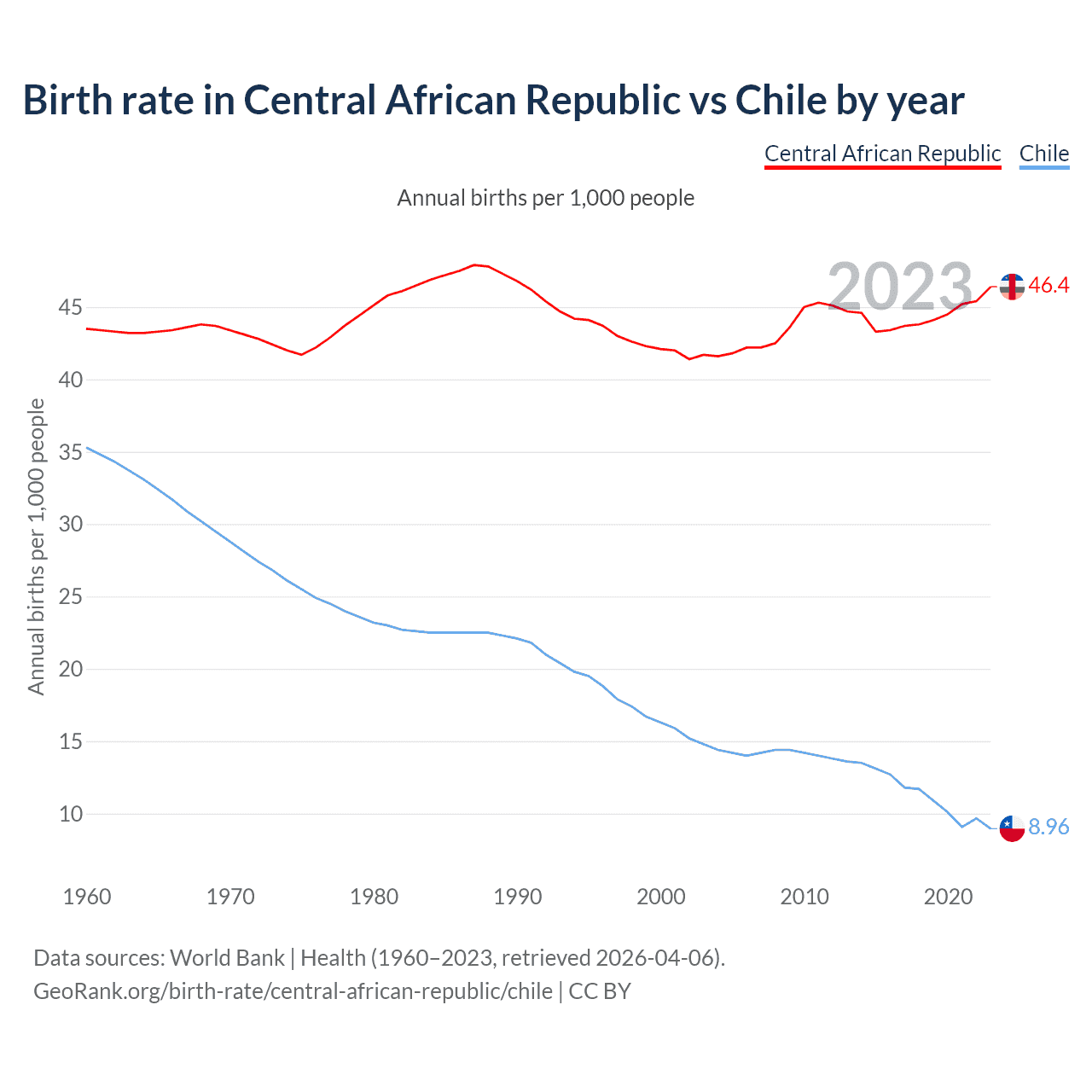 GeoRank.org/birth-rate/central-african-republic/chile | CC BY