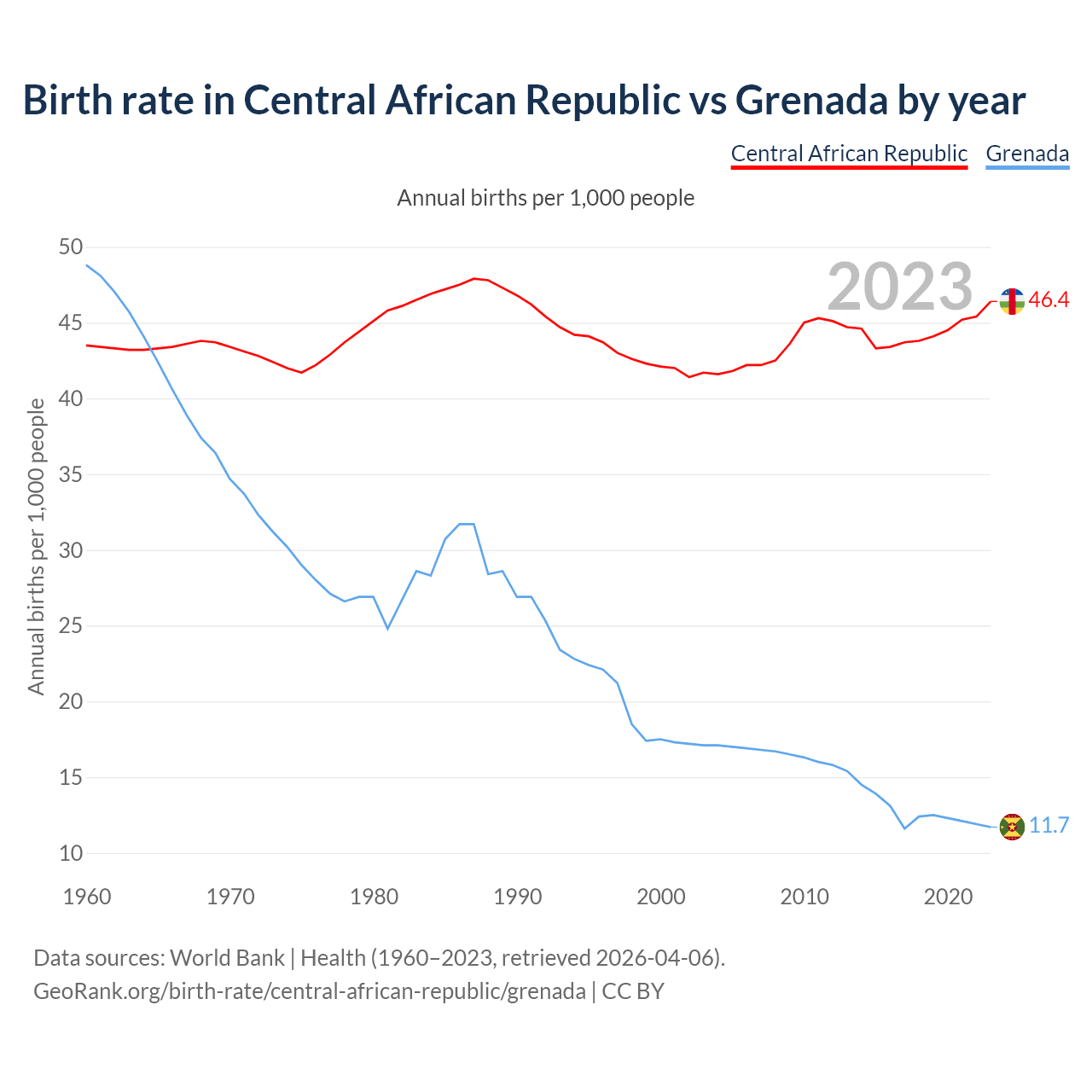 GeoRank.org/birth-rate/central-african-republic/grenada | CC BY