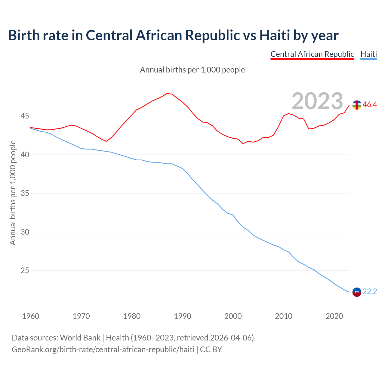 GeoRank.org/birth-rate/central-african-republic/haiti | CC BY