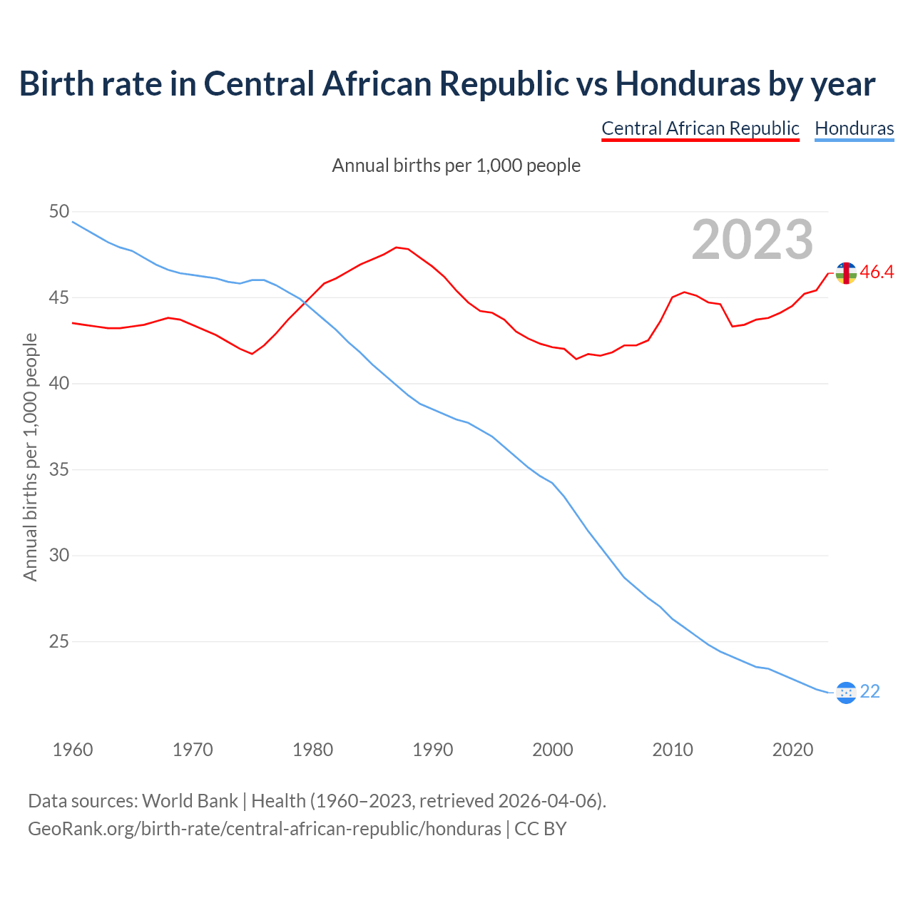 GeoRank.org/birth-rate/central-african-republic/honduras | CC BY
